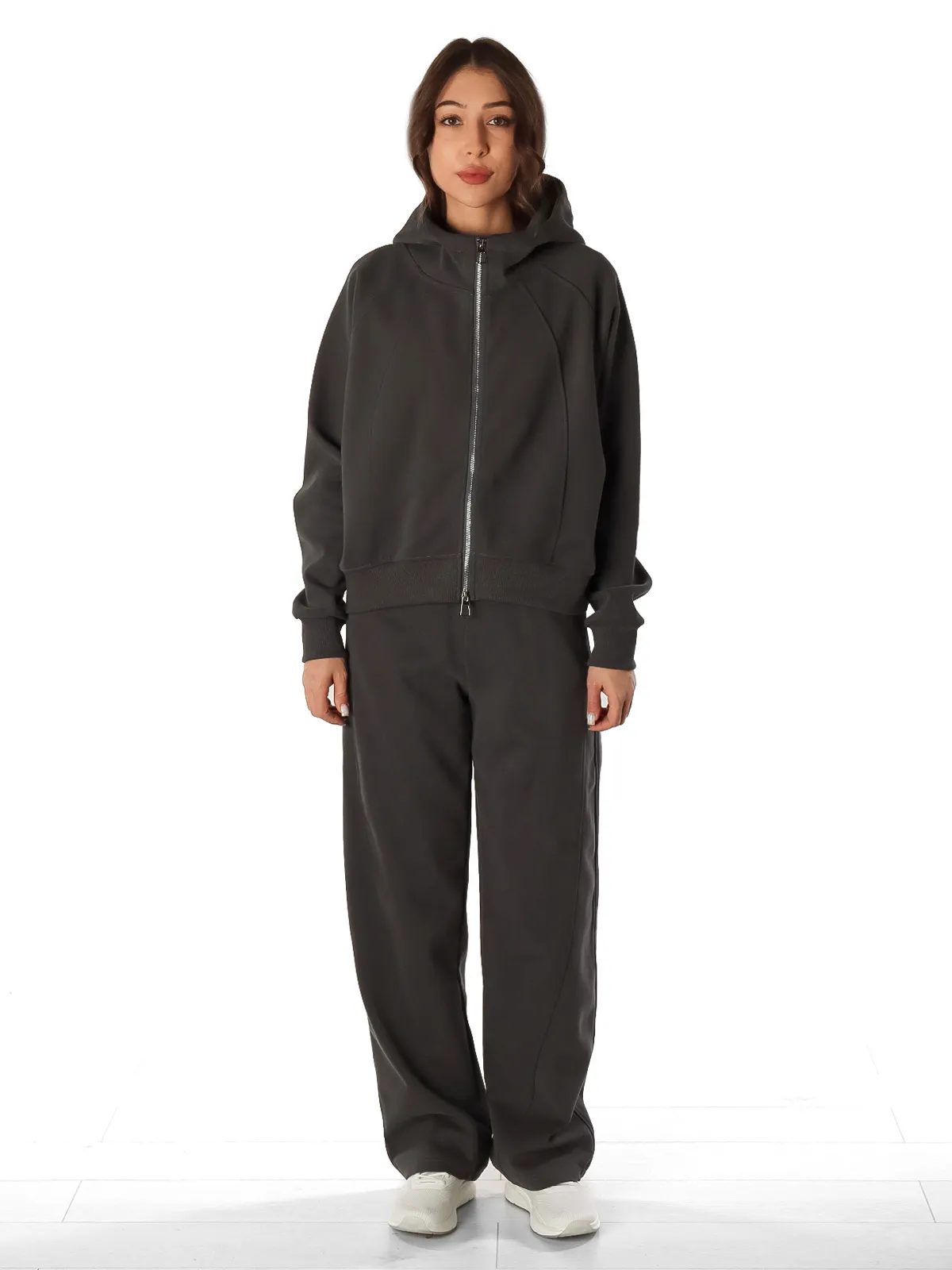 Костюм Айли идеально подходит для повседневной носки: толстовка с капюшоном на молнии и брюки прямого кроя гарантируют комфорт, свободу движений и стильный внешний вид. Этот комплект станет незаменимой частью вашего гардероба.