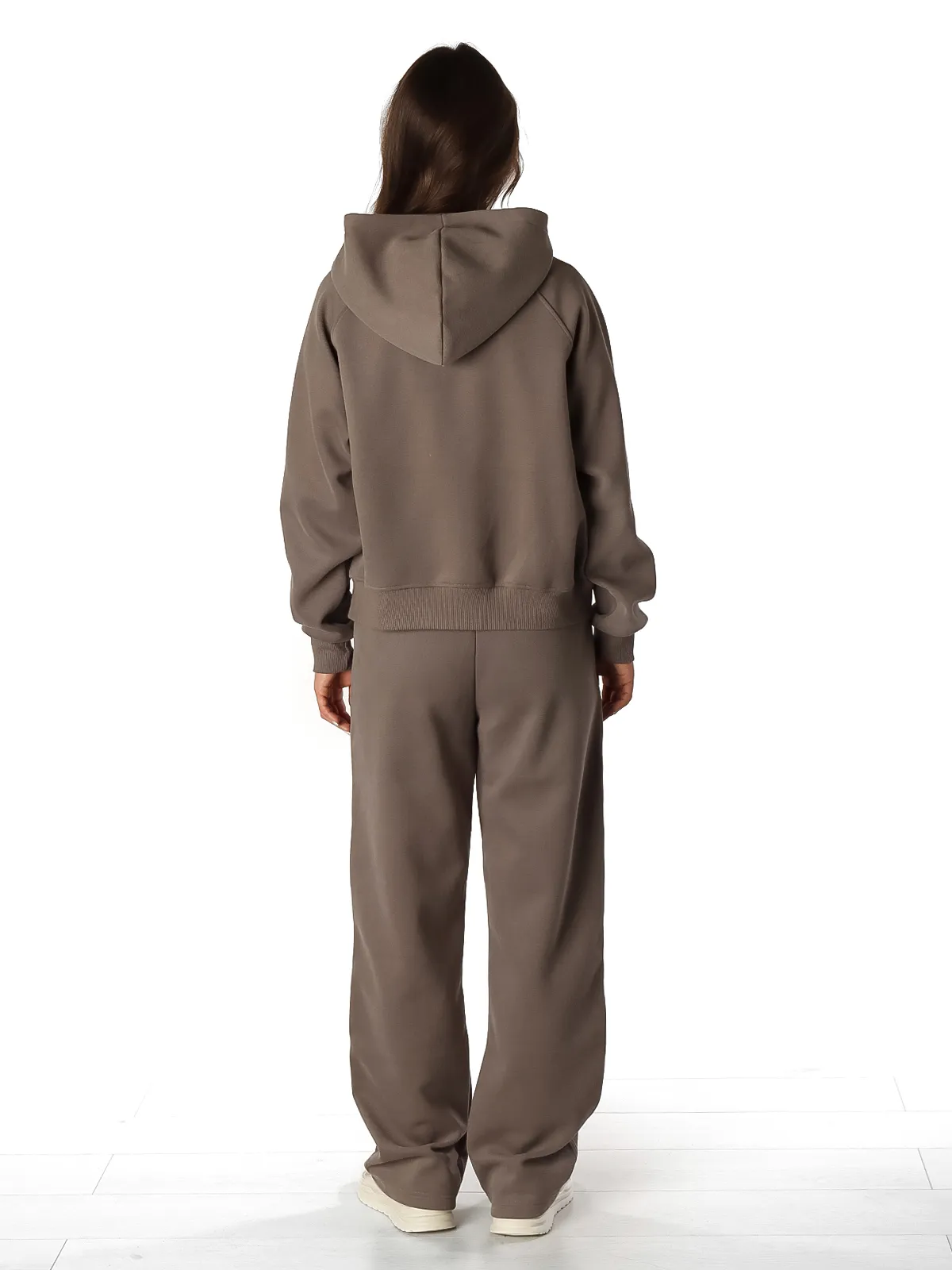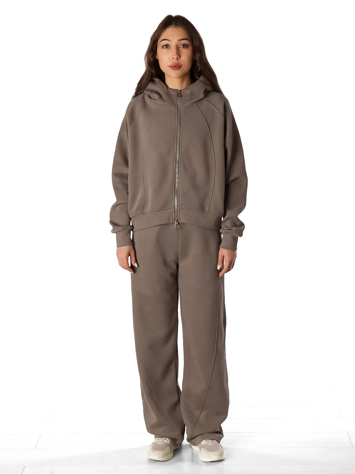Костюм Айли идеально подходит для повседневной носки: толстовка с капюшоном на молнии и брюки прямого кроя гарантируют комфорт, свободу движений и стильный внешний вид. Этот комплект станет незаменимой частью вашего гардероба.