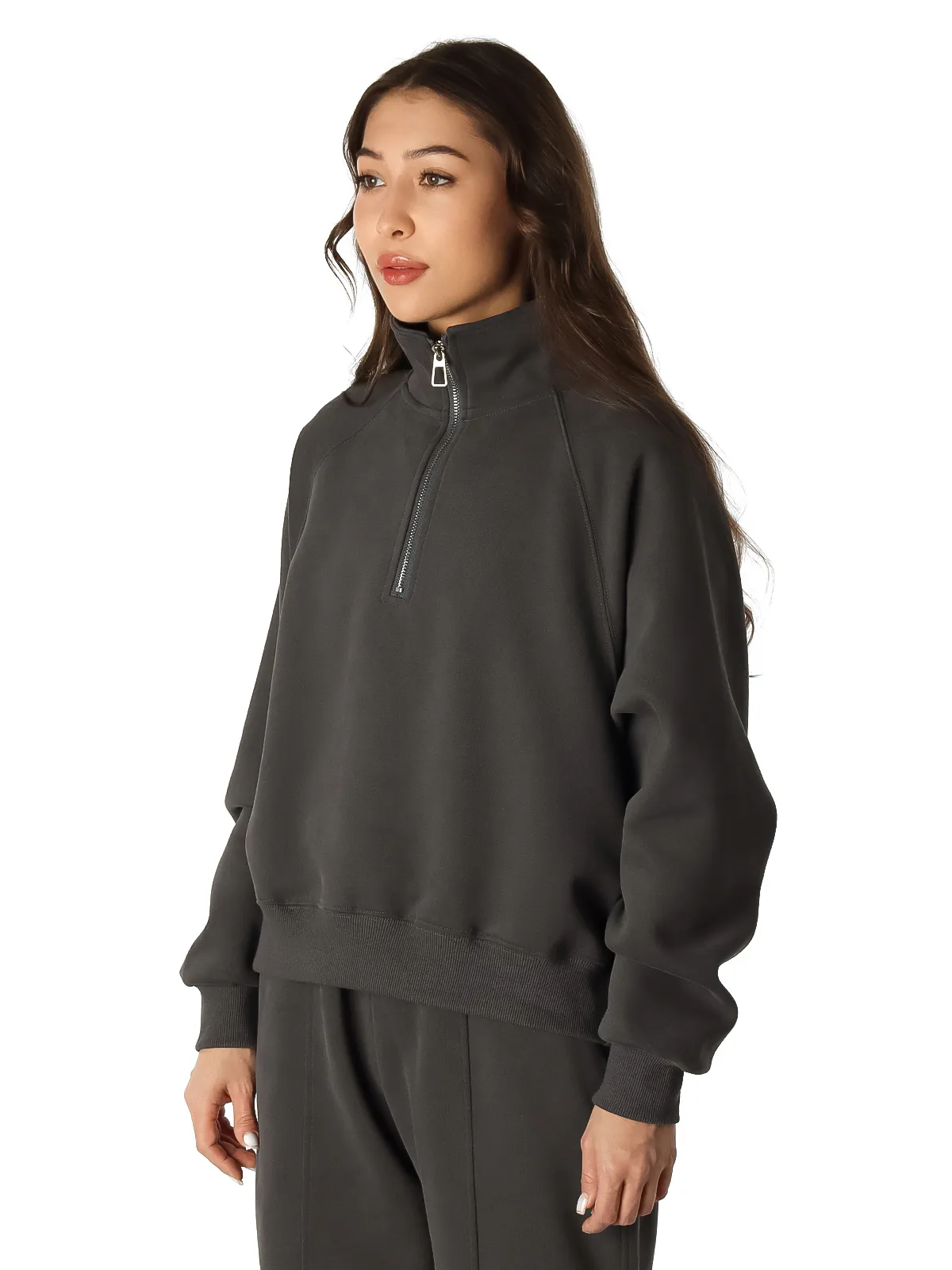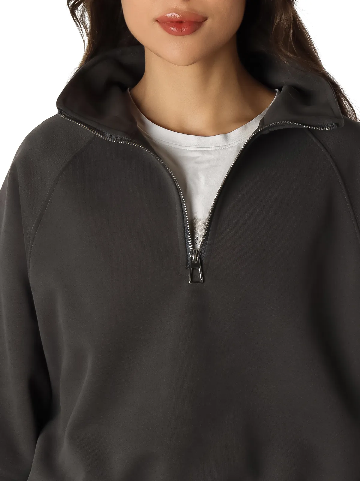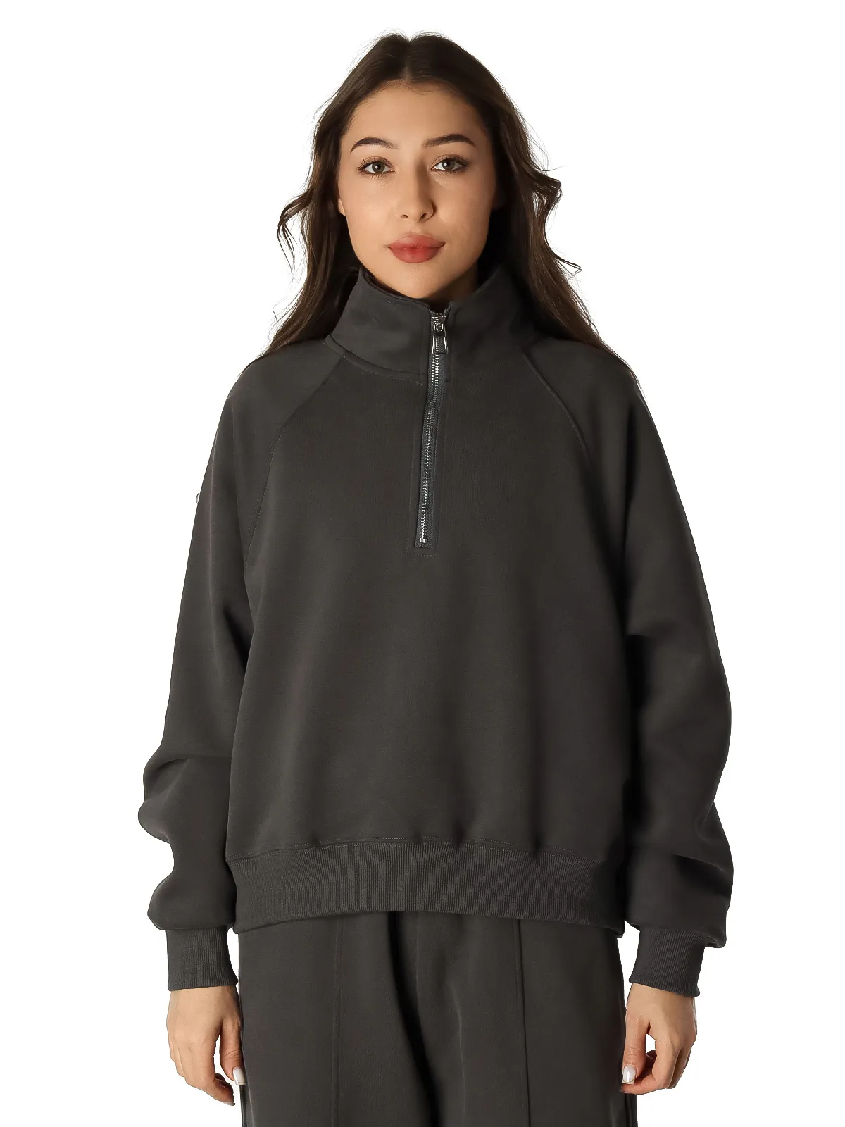 - Толстовка: модель с высоким воротником, оснащена удобной молнией для легкого надевания, дополнена мягкими манжетами для защиты от холода.