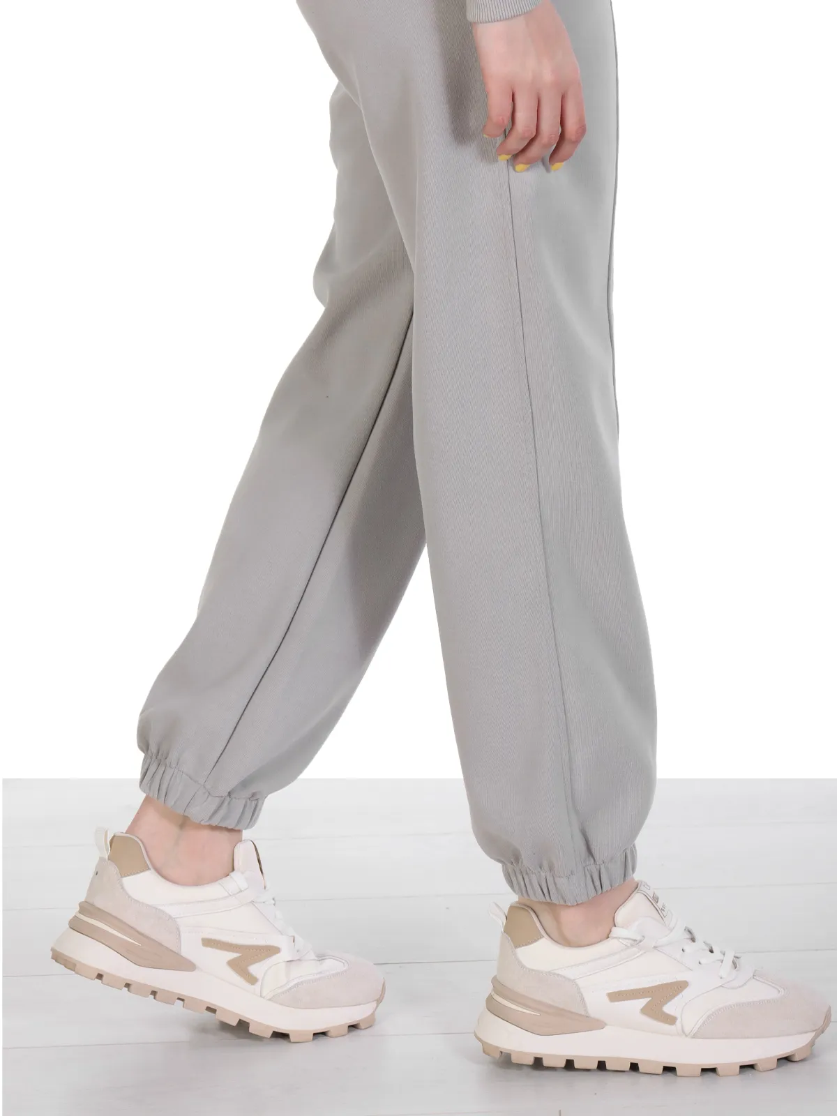 • Брюки: прямой крой с боковыми карманами, эластичным поясом с регулировочным шнурком и манжетами на резинке.