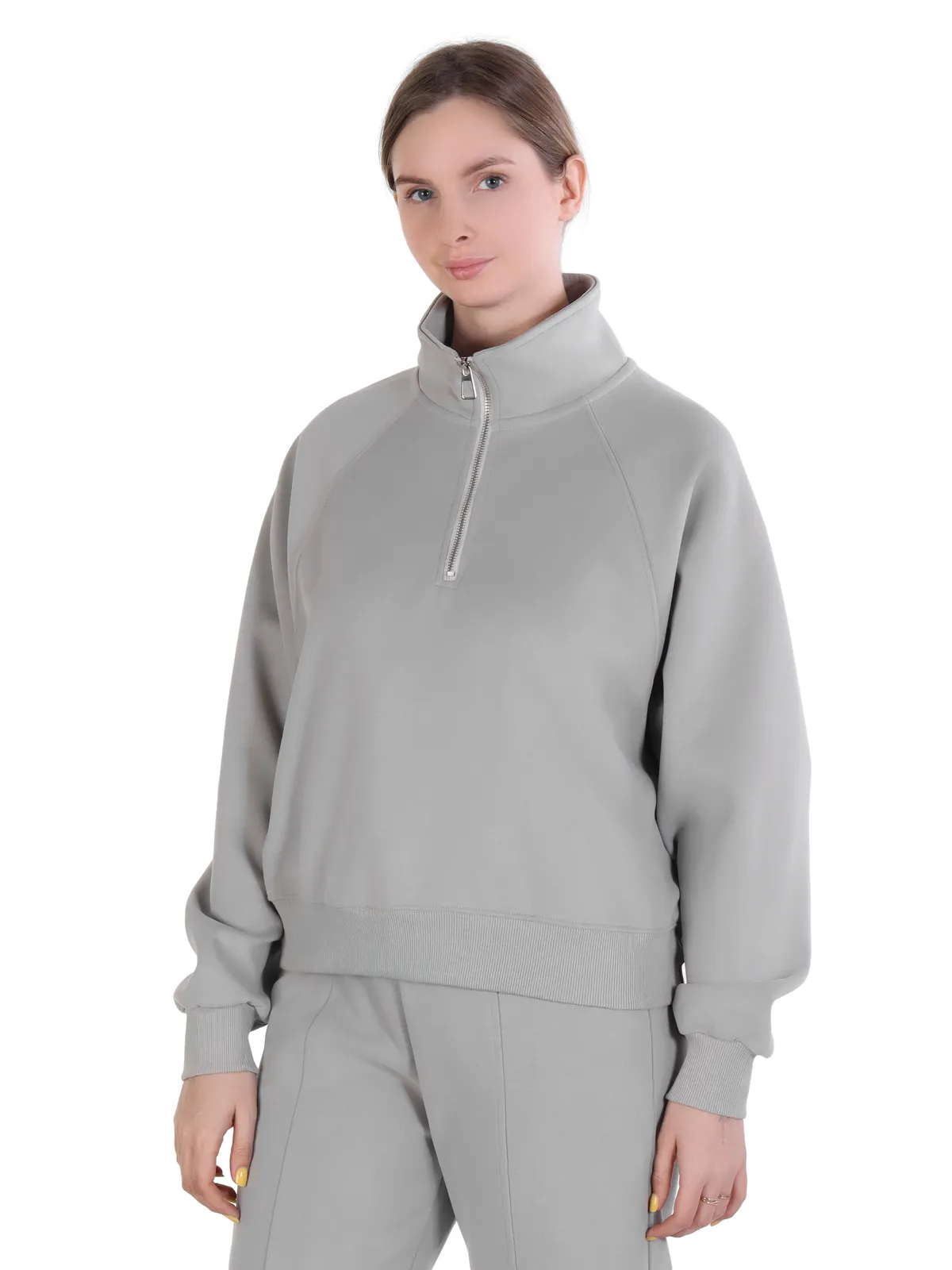 • Толстовка: модель с высоким воротником, оснащена удобной молнией для легкого надевания, дополнена мягкими манжетами для защиты от холода.