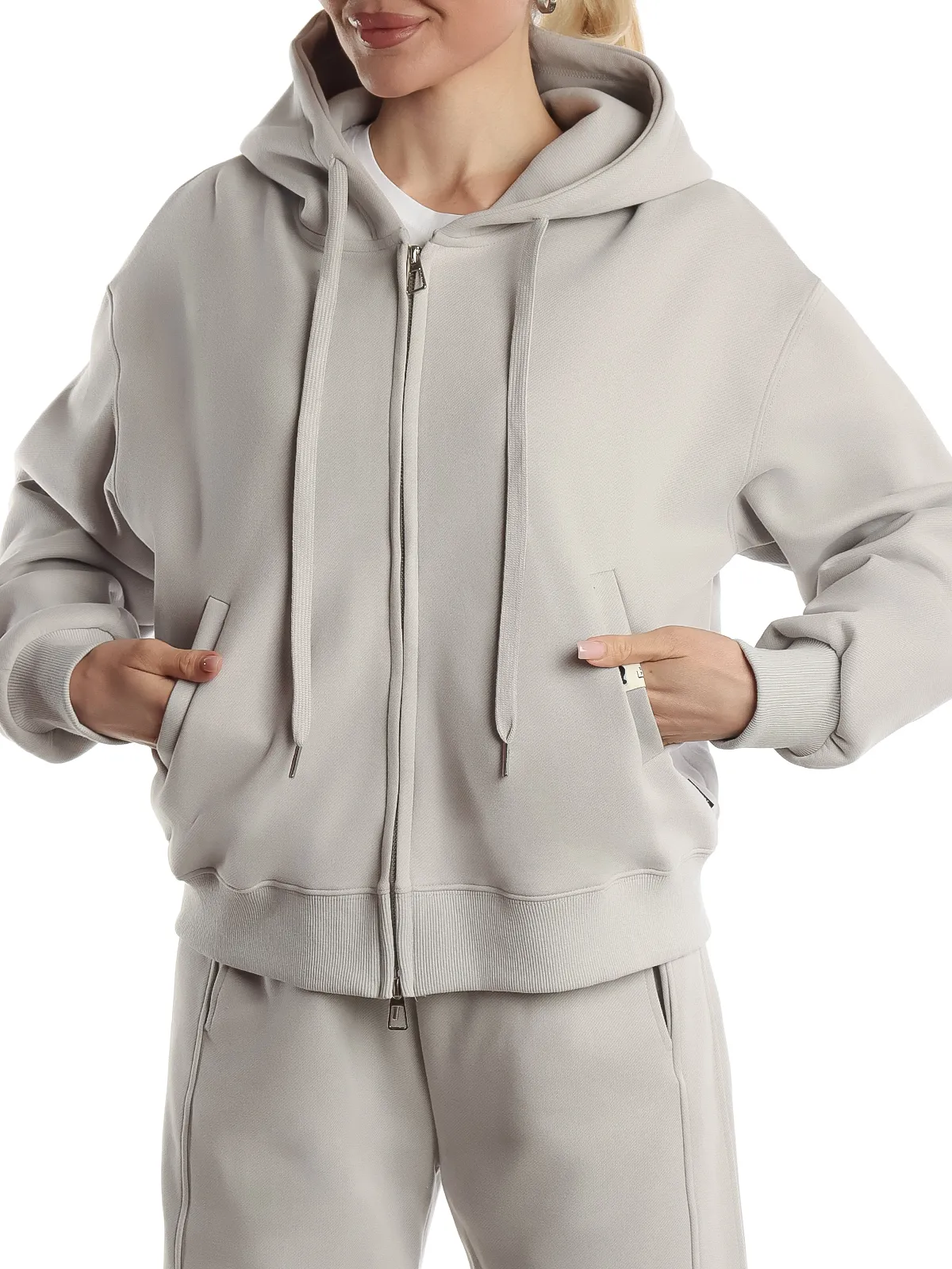• Толстовка на молнии с капюшоном: Удобная застежка, обеспечивающая комфорт и защиту от непогоды.