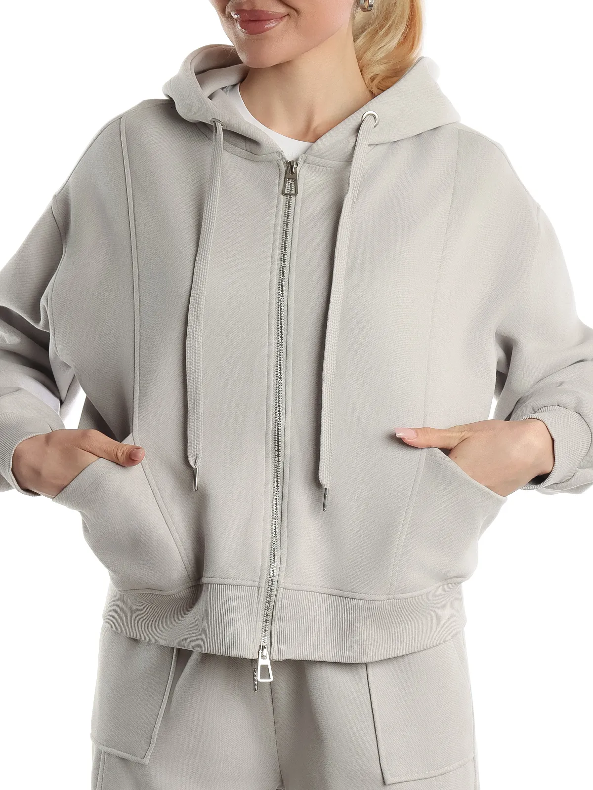 - Толстовка на молнии с капюшоном: Удобная застежка, обеспечивающая комфорт и защиту от непогоды.
