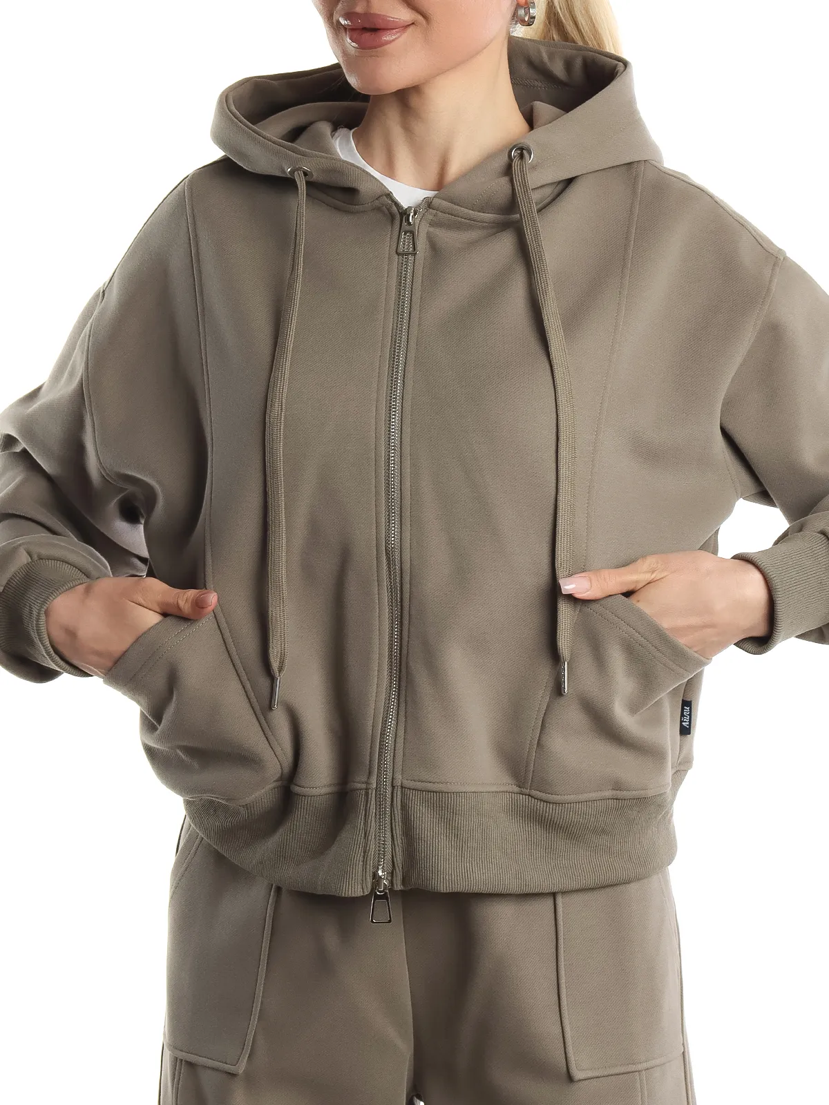 • Толстовка на молнии с капюшоном: Удобная застежка, обеспечивающая комфорт и защиту от непогоды.