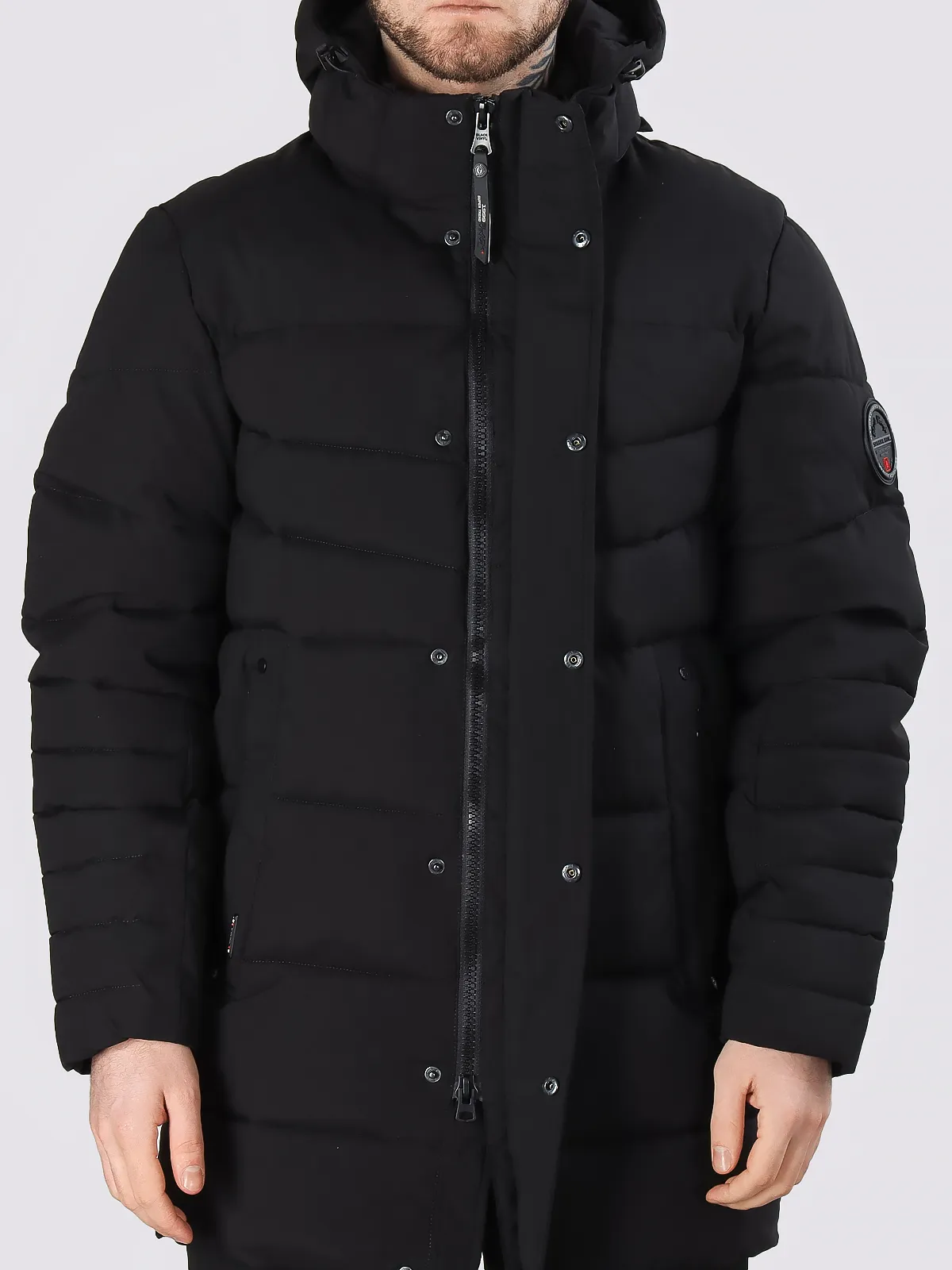 Куртка утепленная мужская Black Vinyl — идеальный выбор для холодной погоды, сочетающий стиль и функциональность.