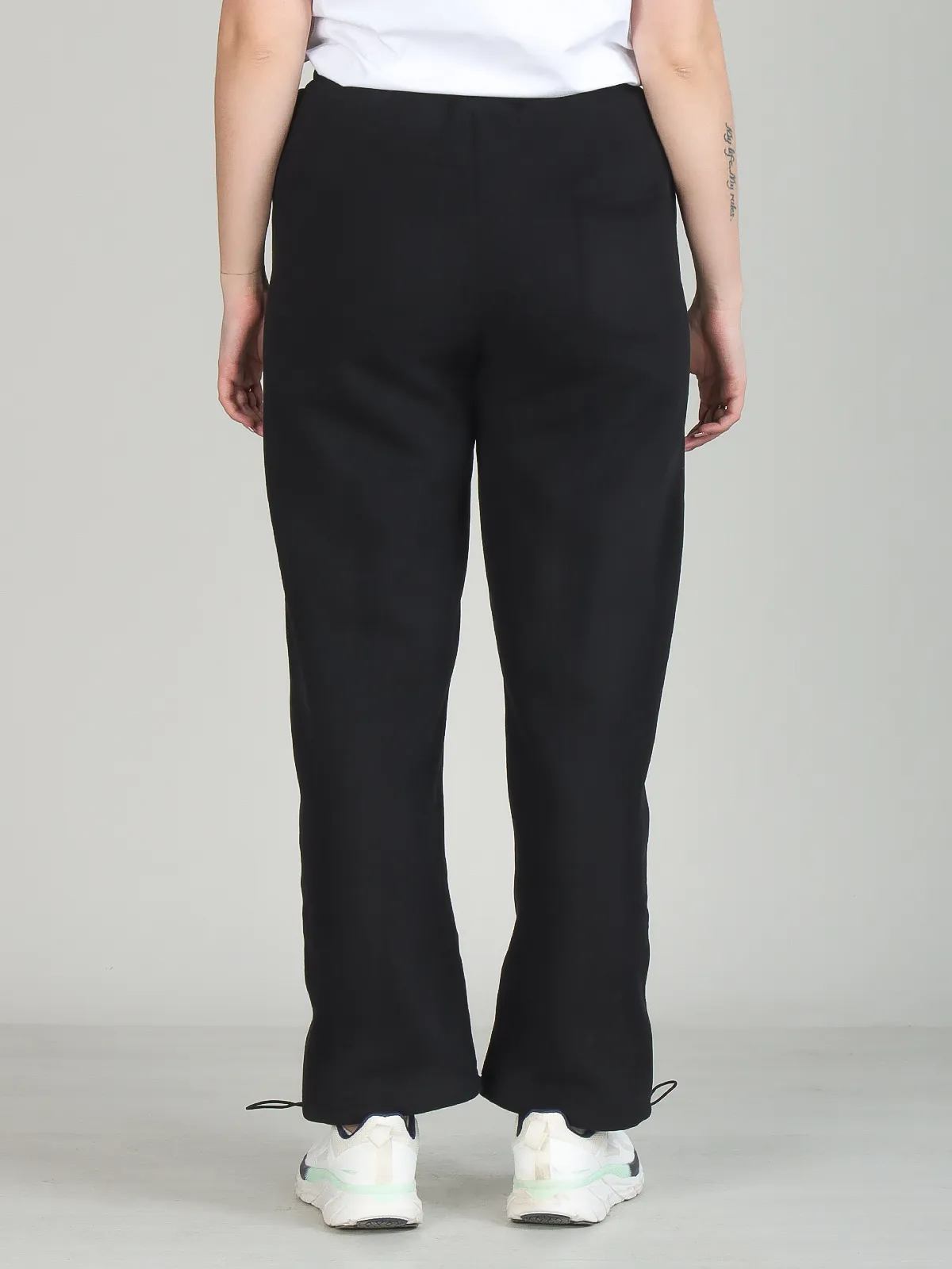 Пояс на эластичной резинке регулируется шнурком, обеспечивая удобство и идеальную посадку. Брюки оснащены несколькими боковыми карманами и задним карманом для удобства хранения мелочей.