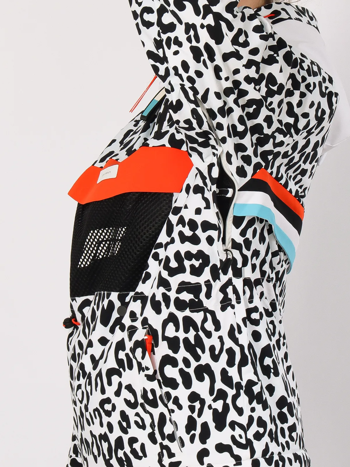 Для дополнительной защиты от снега предусмотрены снегозащитная юбка, влагозащитные молнии и проклеенные швы, исключающие проникновение влаги внутрь. Куртка оснащена регулируемым капюшоном и манжетами, что позволяет адаптировать ее под любую погоду.