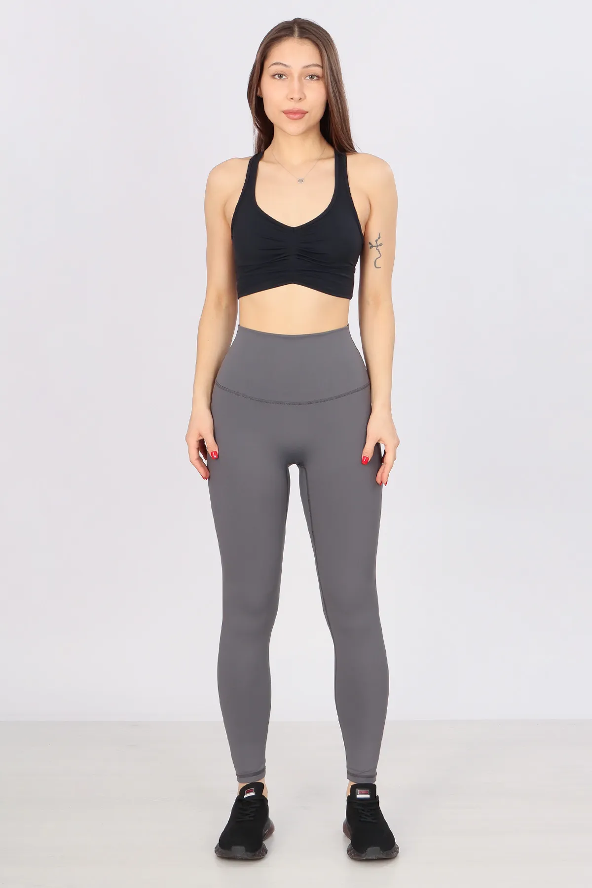 - Материал: полиэстер с добавлением спандекса, что делает леггинсы прочными, эластичными и приятными на ощупь.