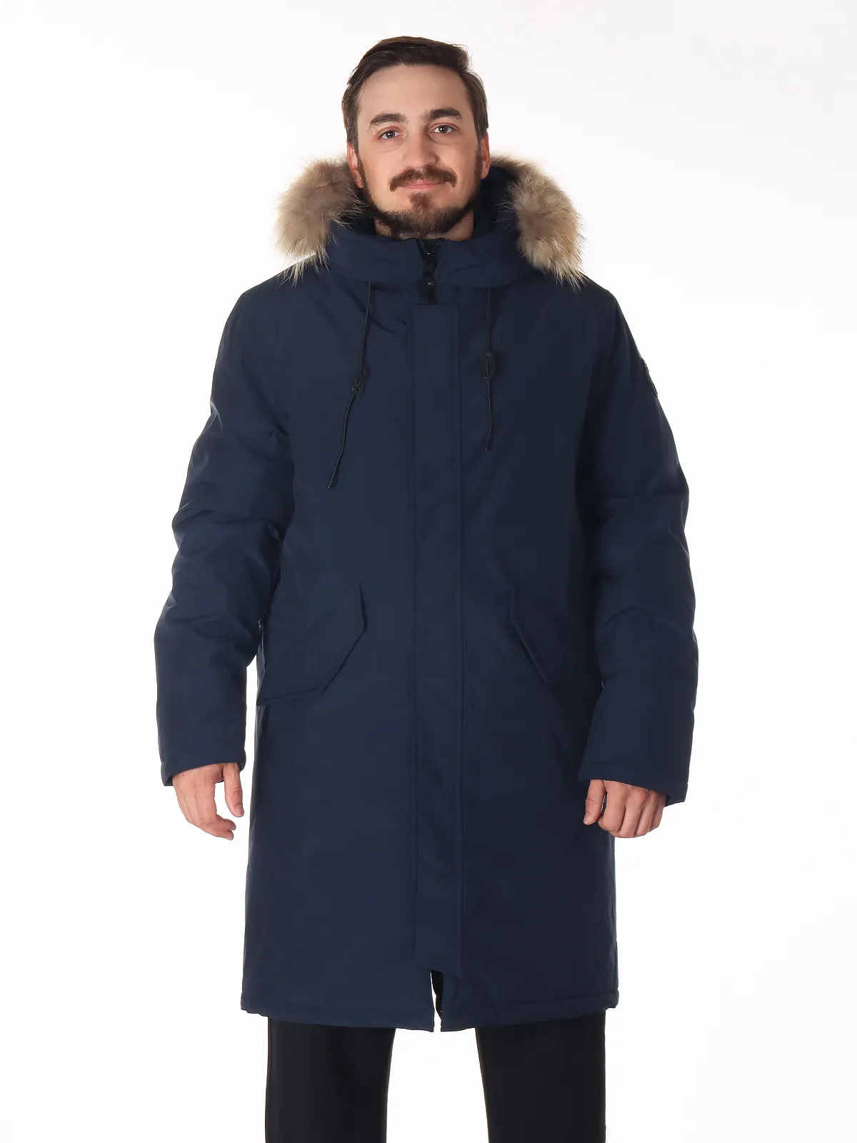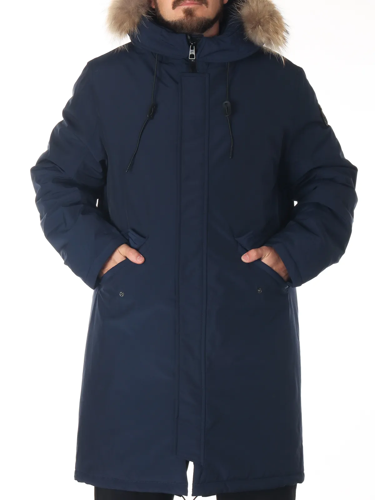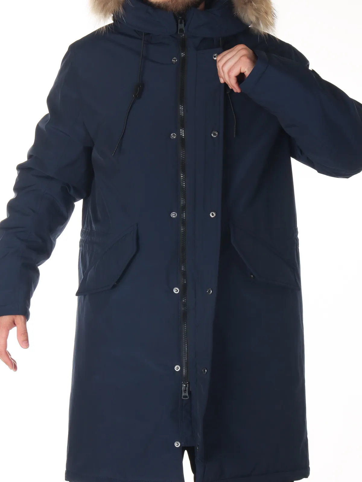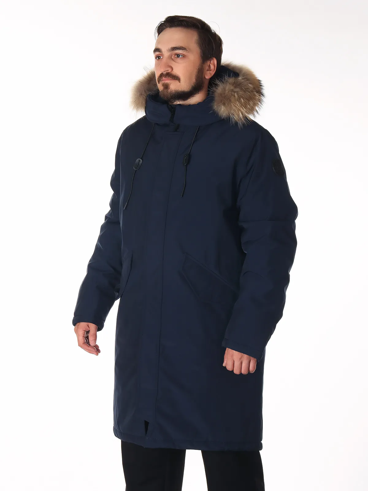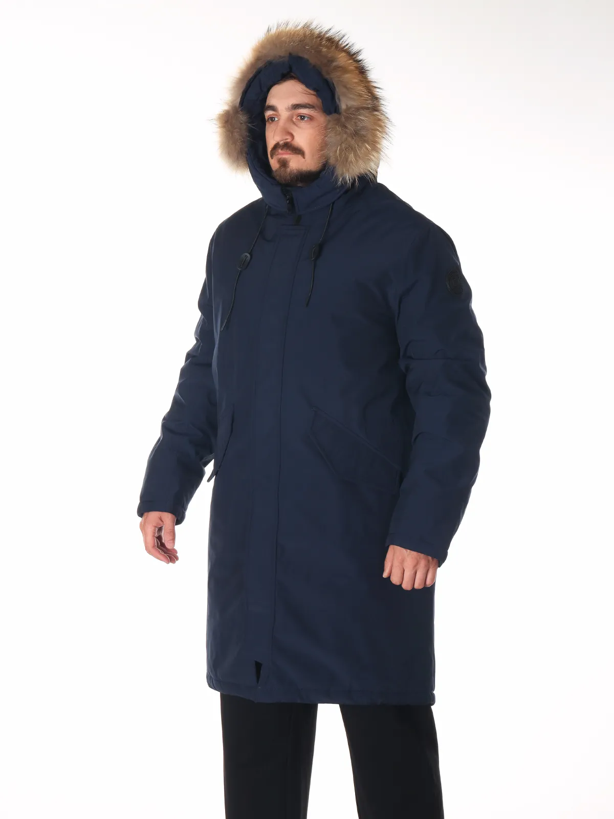 Удлиненный крой обеспечивает дополнительное тепло и комфорт. Верх выполнен из прочного полиэстера, устойчивого к износу и влаге. Регулируемый капюшон с съемной меховой опушкой защищает голову и шею, а ветрозащитная планка предотвращает проникновение холодного воздуха. Боковые карманы позволяют удобно хранить мелкие вещи и согревать руки.