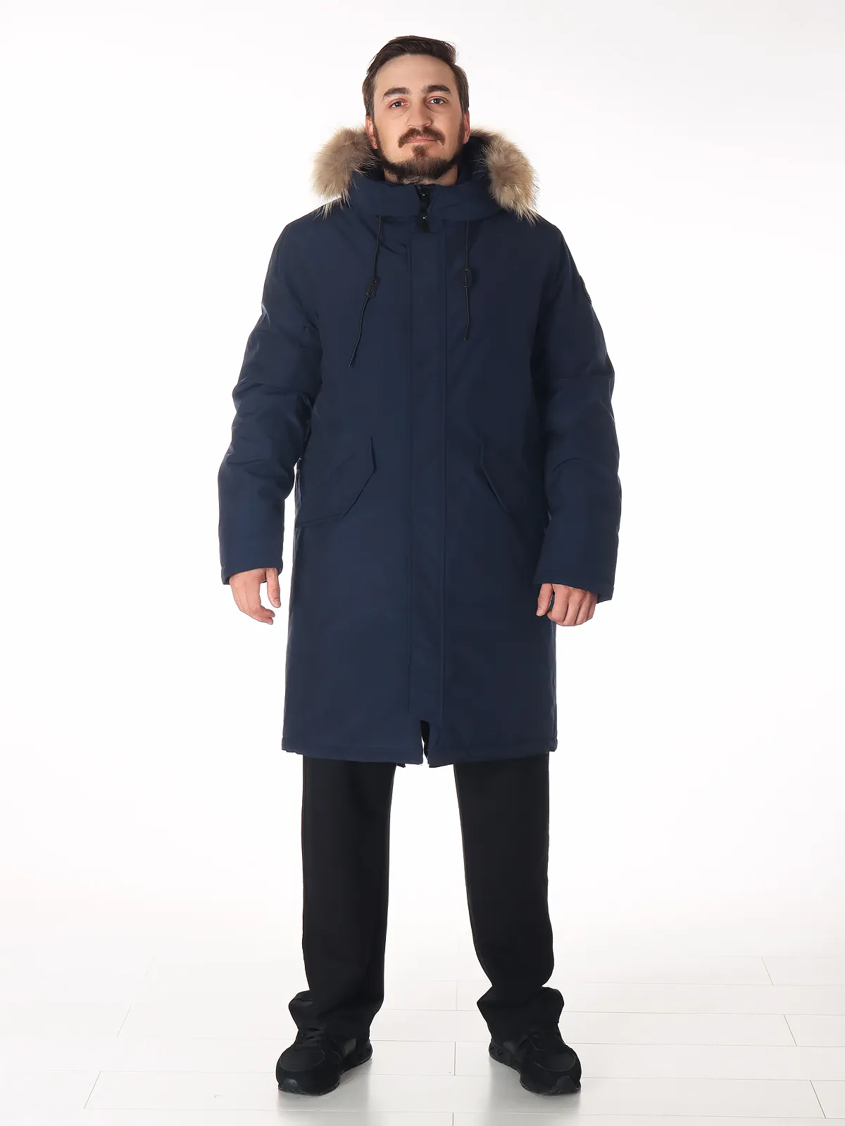 - Капюшон с регулируемой посадкой и съемной меховой опушкой.