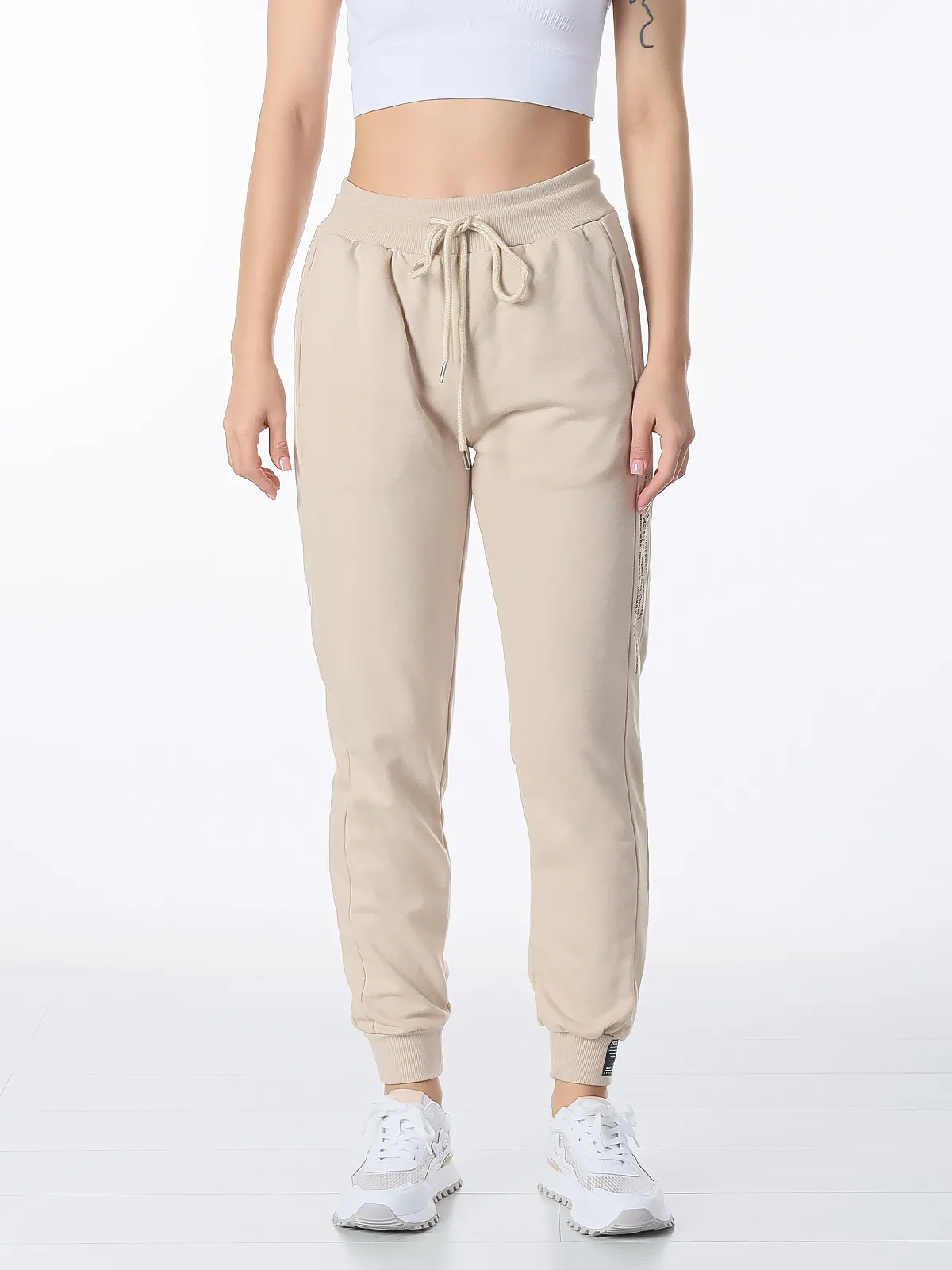 - Пояс: на эластичной резинке регулируется шнурком, что позволяет подобрать оптимальную фиксацию и надёжно удерживает брюки на талии.