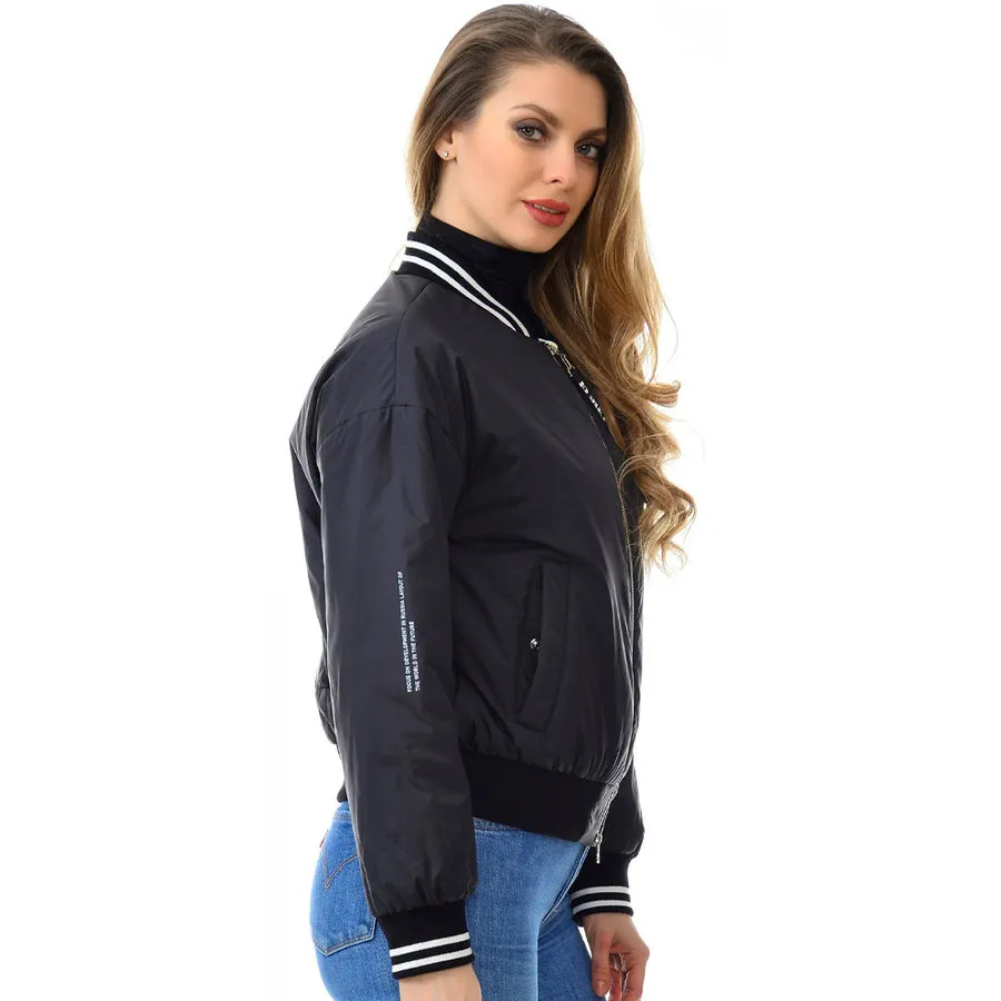 Женский бомбер в черном цвете.