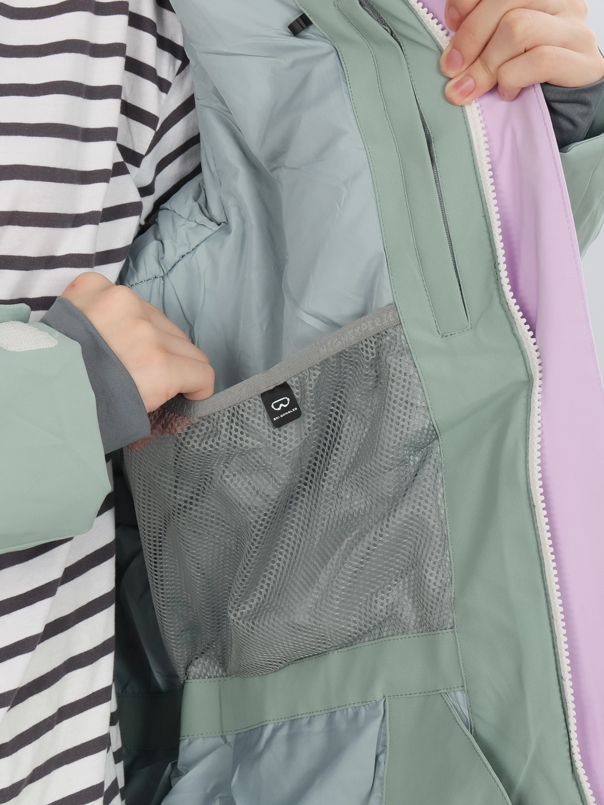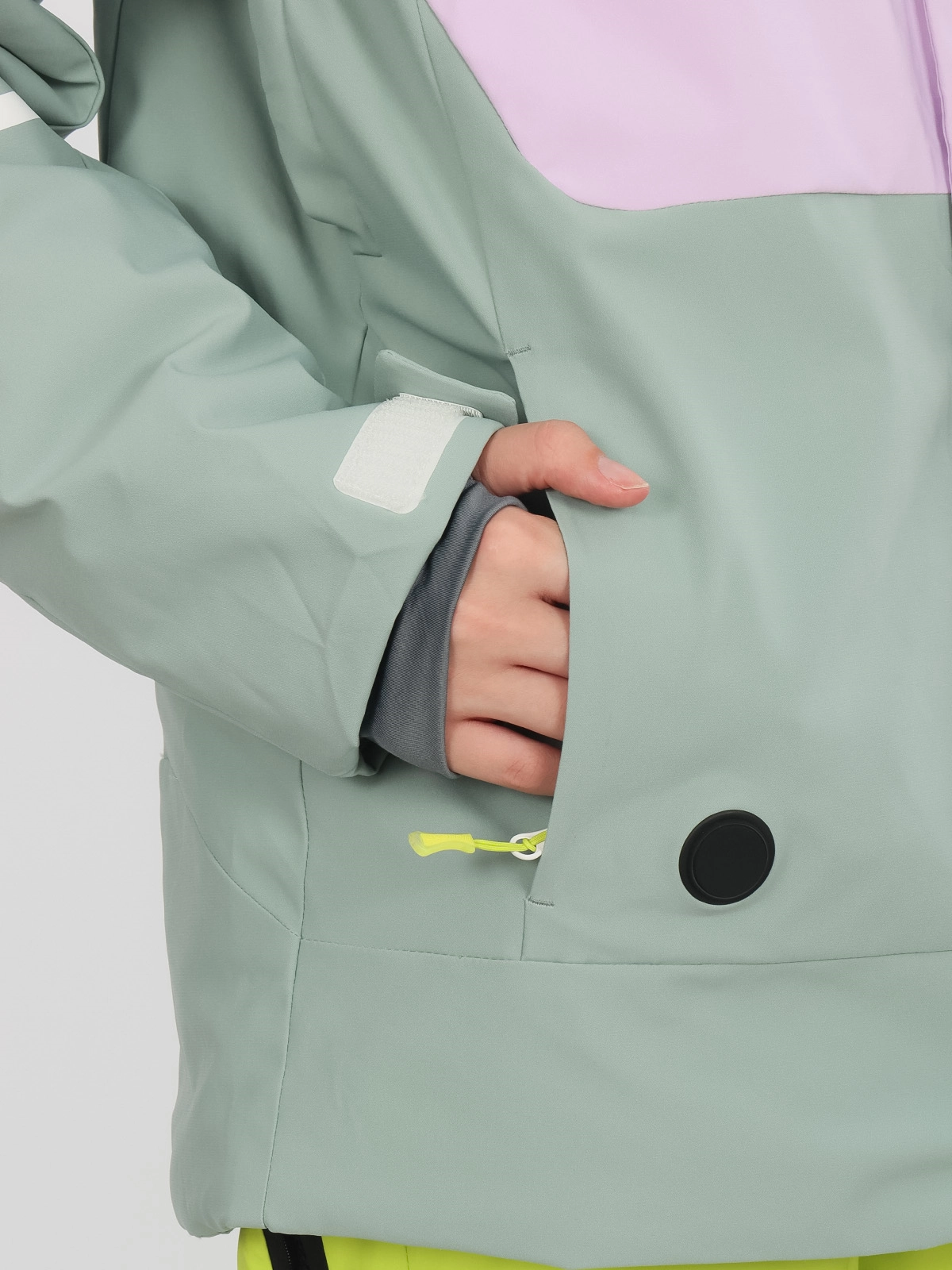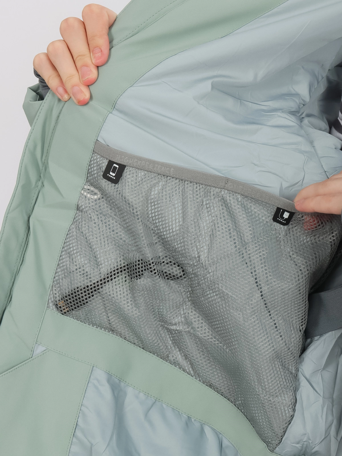 Куртка оснащена несъемным регулируемым капюшоном, карманом для ski pass, прорезными карманами на молнии и несколькими внутренними карманами для хранения мелочей. Манжеты на липучках и снегозащитная юбка предотвращают проникновение снега, а вентилируемые прорези под мышками на молнии обеспечивают оптимальную терморегуляцию.