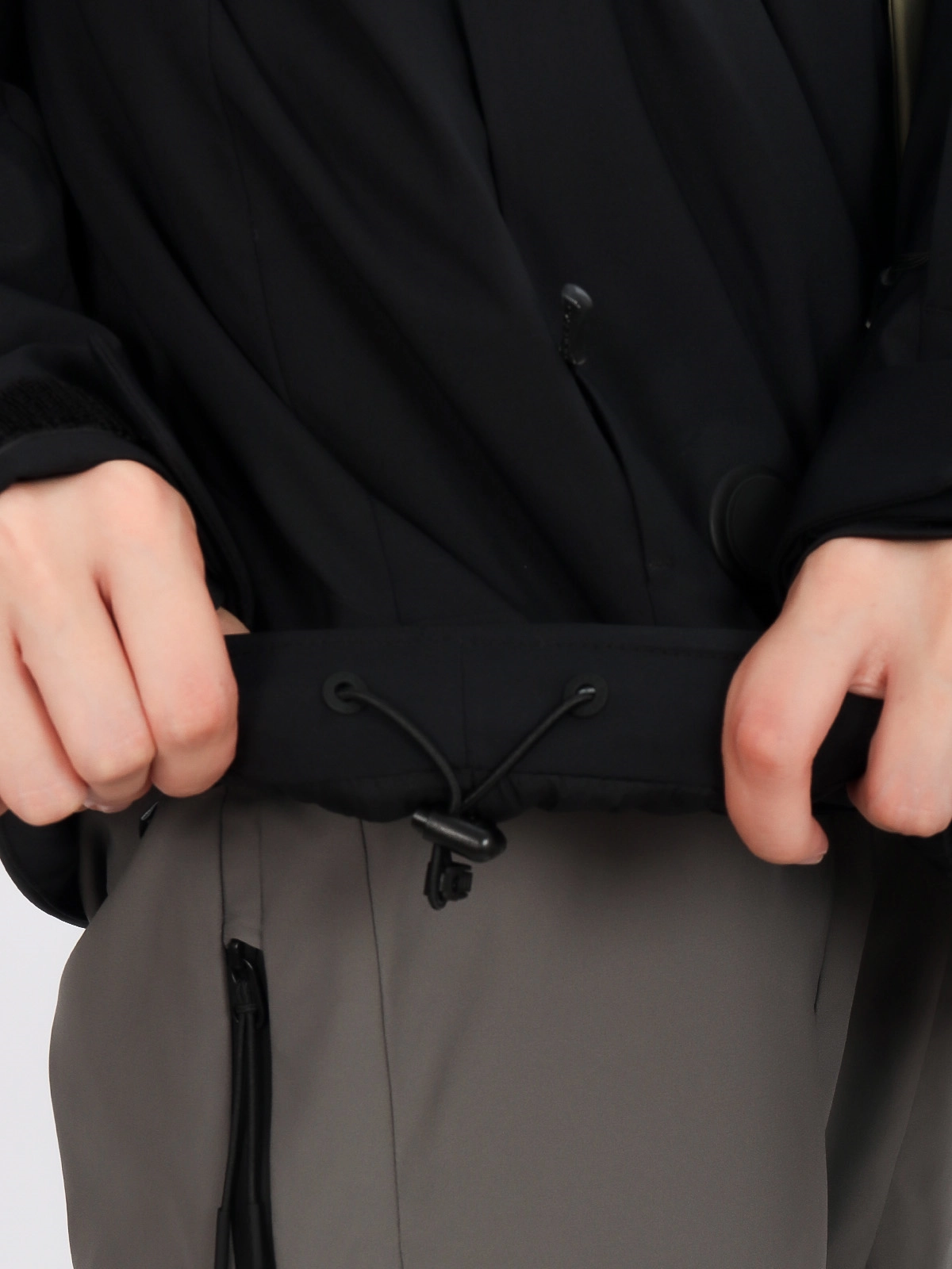 Двухзамковая молния обеспечивает комфорт при движении и легкий доступ к внутренним слоям одежды. Кулиса по нижнему краю позволяет отрегулировать посадку куртки, а лямки дают возможность носить её как рюкзак, освобождая руки.