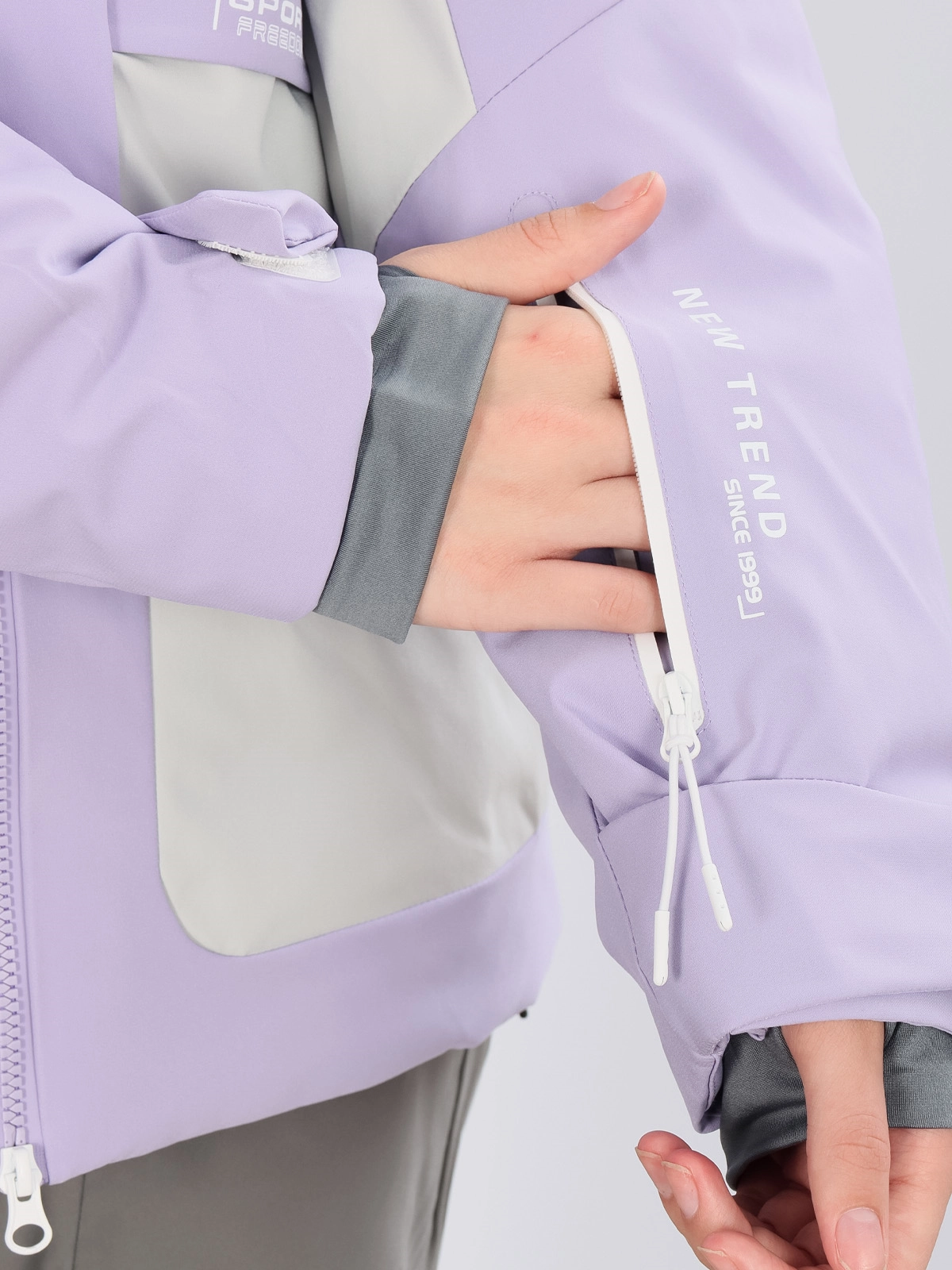 Манжеты на липучках защищают от холода и снега, а снегозащитная юбка на кнопках предотвращает попадание снега под куртку.
