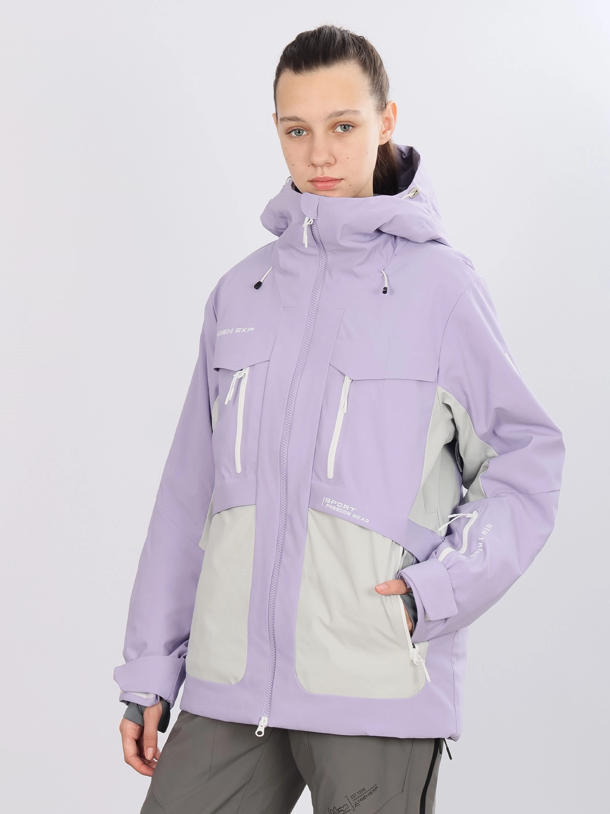 Горнолыжная куртка High Experience RH64001 — универсальная модель сиреневого цвета, подходящая для мужчин и женщин, идеально сочетающая стиль, функциональность и комфорт на склонах.