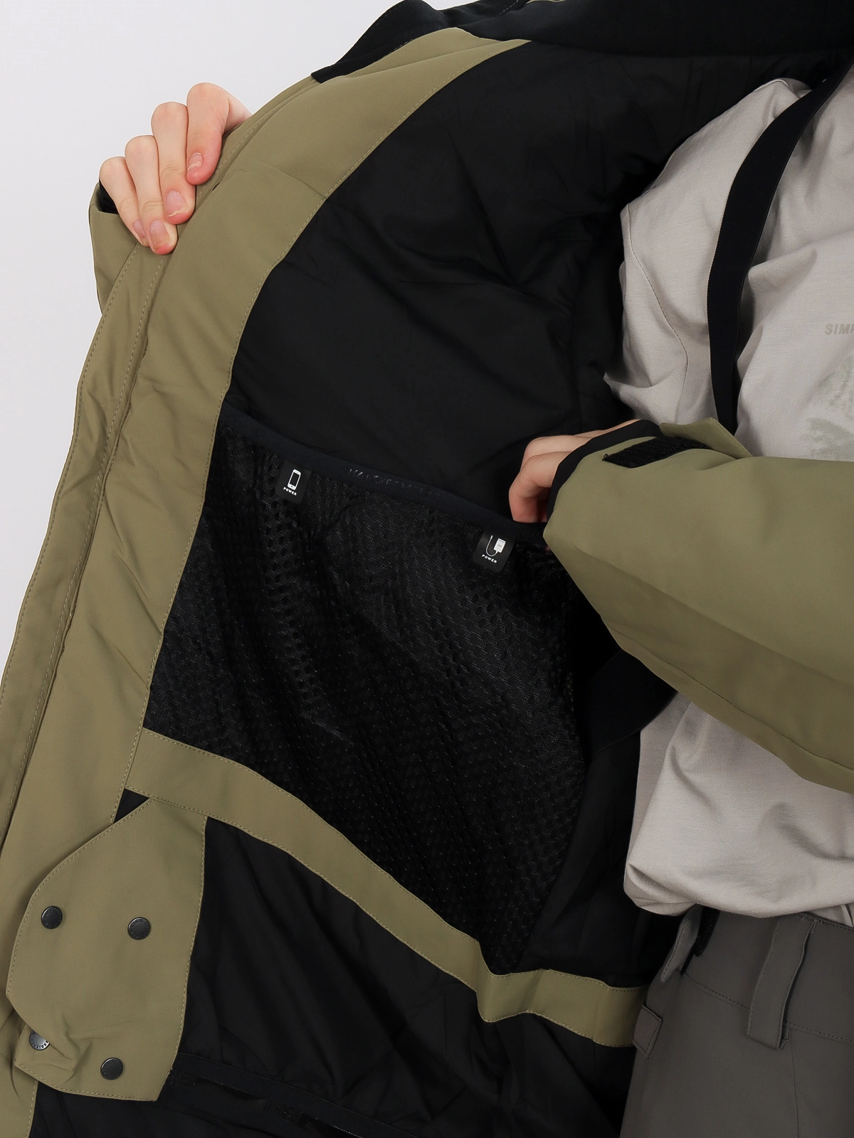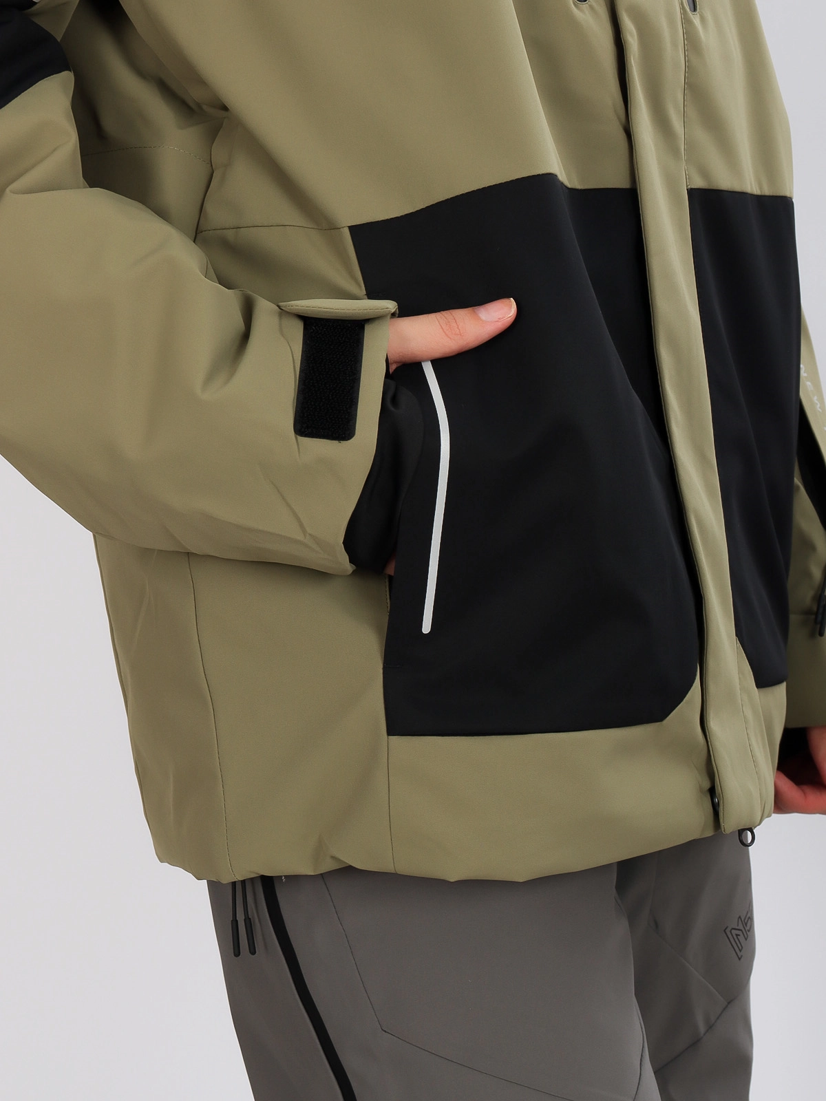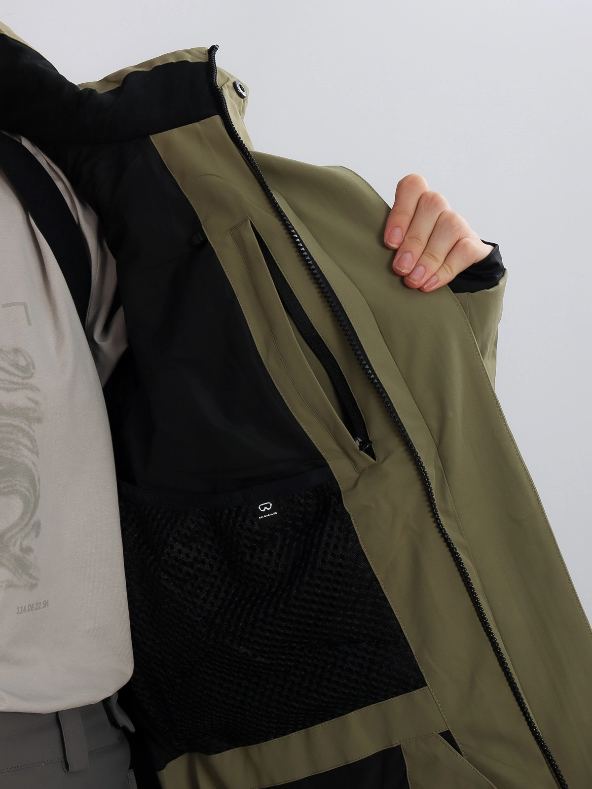 Съемный капюшон с регулировкой обеспечивает комфорт и защиту от непогоды. Карман для ski pass, нагрудные и внутренние карманы позволяют удобно хранить все необходимое. Манжеты на липучках предотвращают проникновение снега и холодного воздуха.