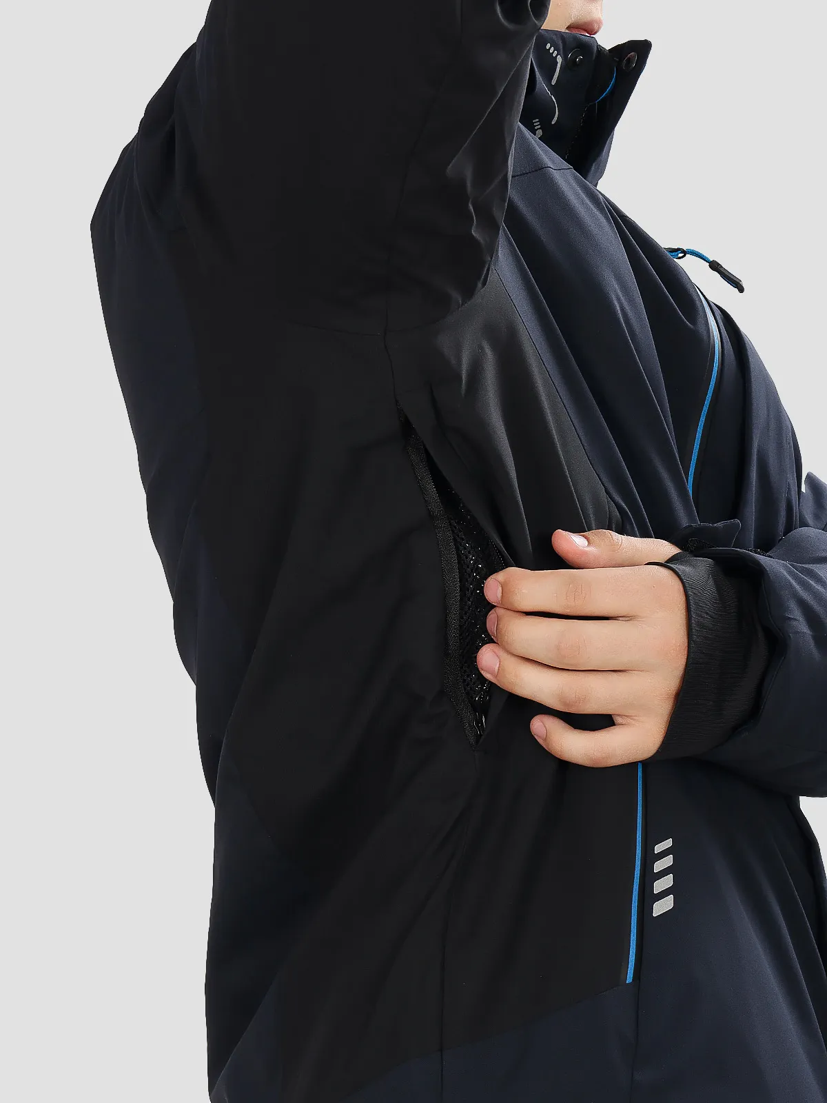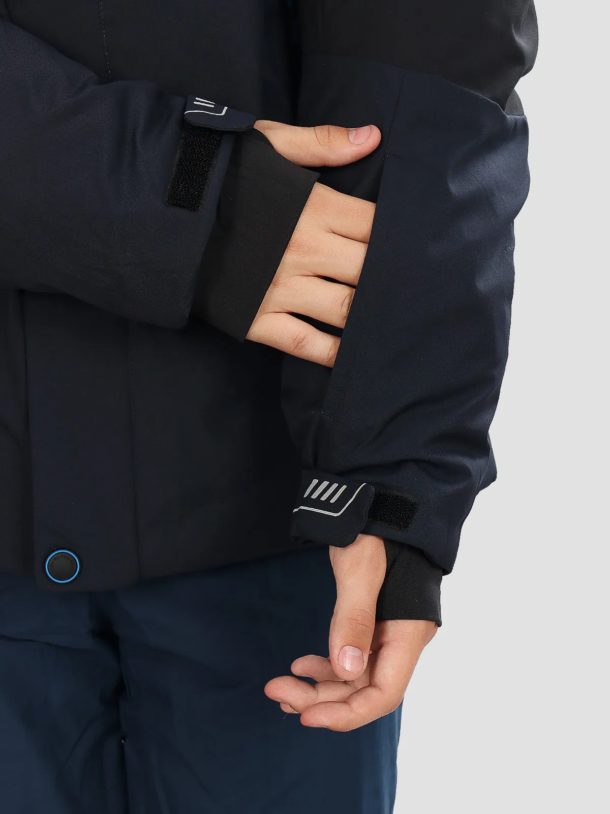 Манжеты на липучках с отверстиями для пальцев и ветрозащитная юбка защищают от снега и ветра. Прорези подмышками с молниями обеспечивают вентиляцию и комфорт при движении.