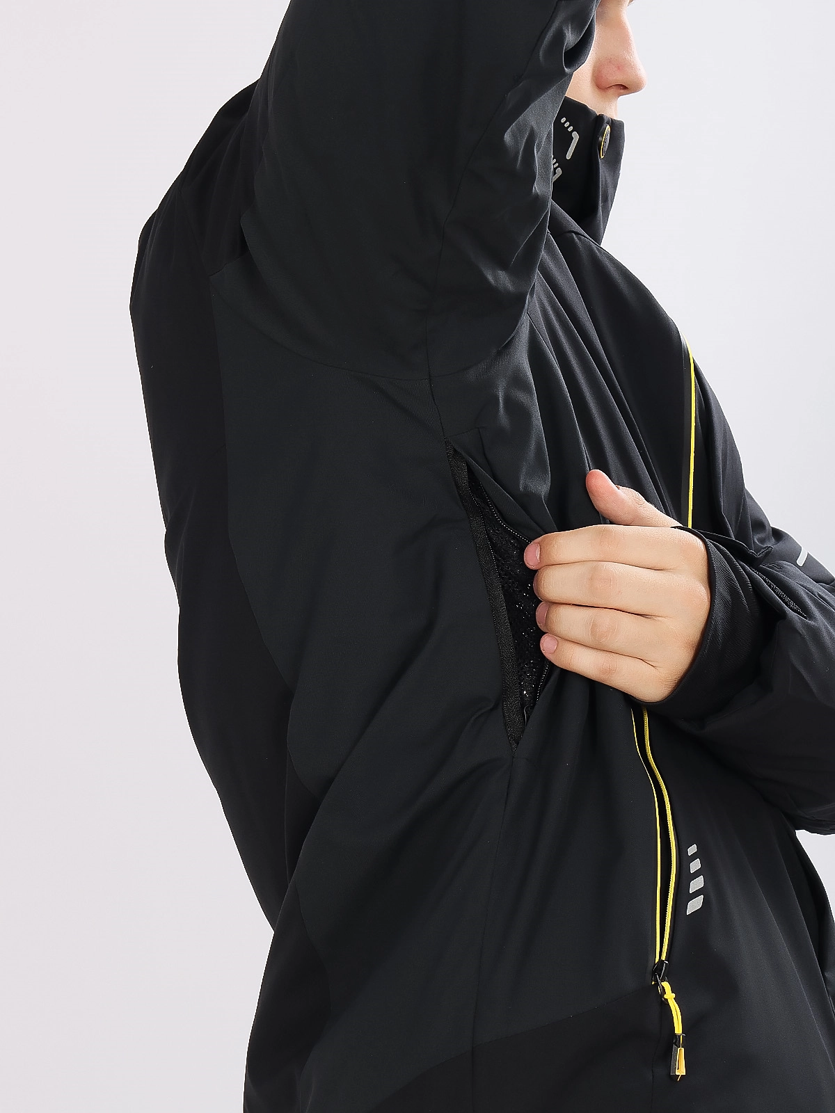 Съёмный регулируемый капюшон защищает от холода, карман для ski pass и прорезные карманы на молнии удобны для хранения мелочей. Внутренние карманы обеспечивают дополнительное место для вещей.