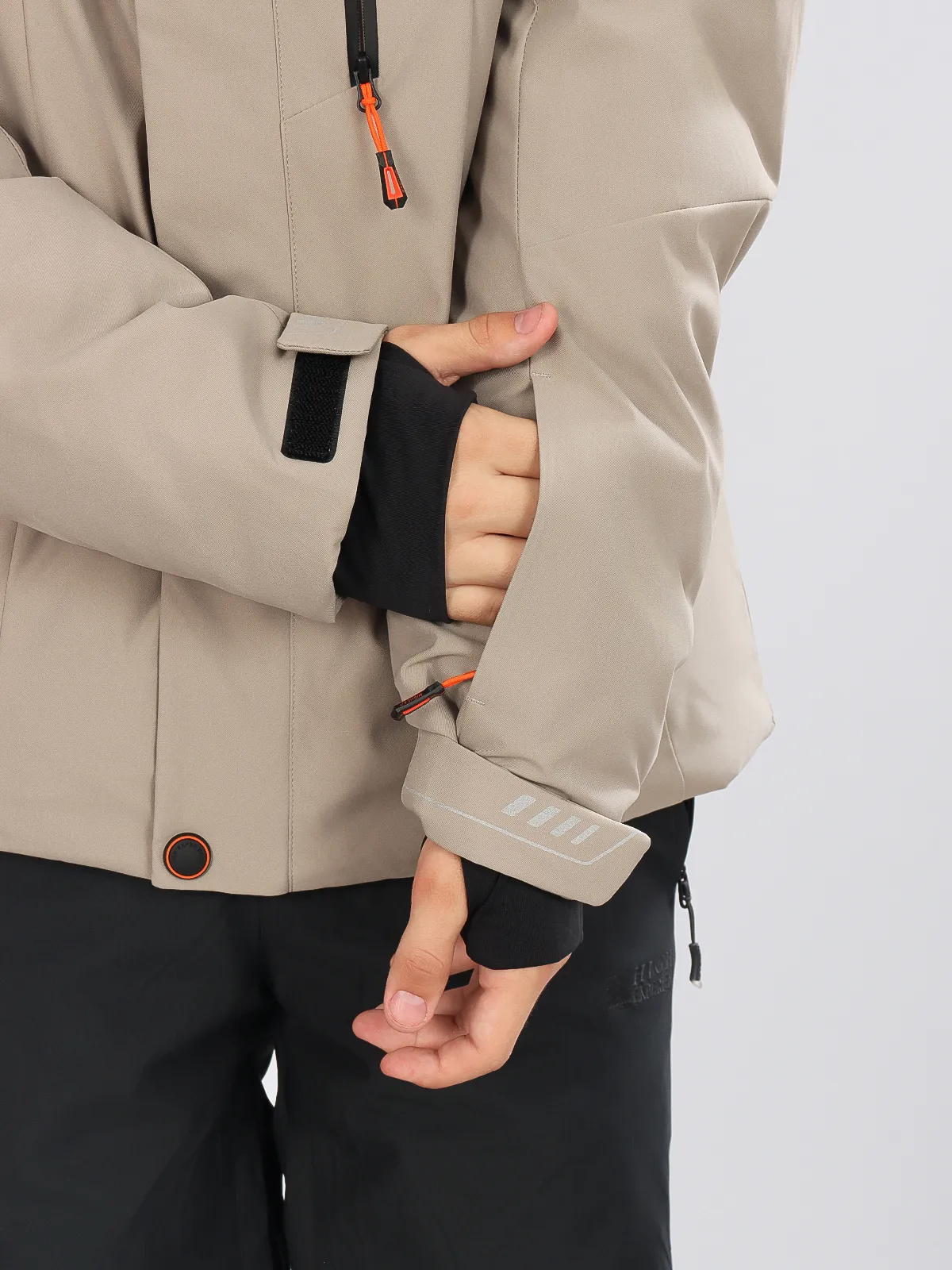 Манжеты на липучках с отверстием для пальцев и снежная юбка защищают от попадания снега. Прорези подмышками с молниями регулируют температуру, добавляя комфорт при движении.