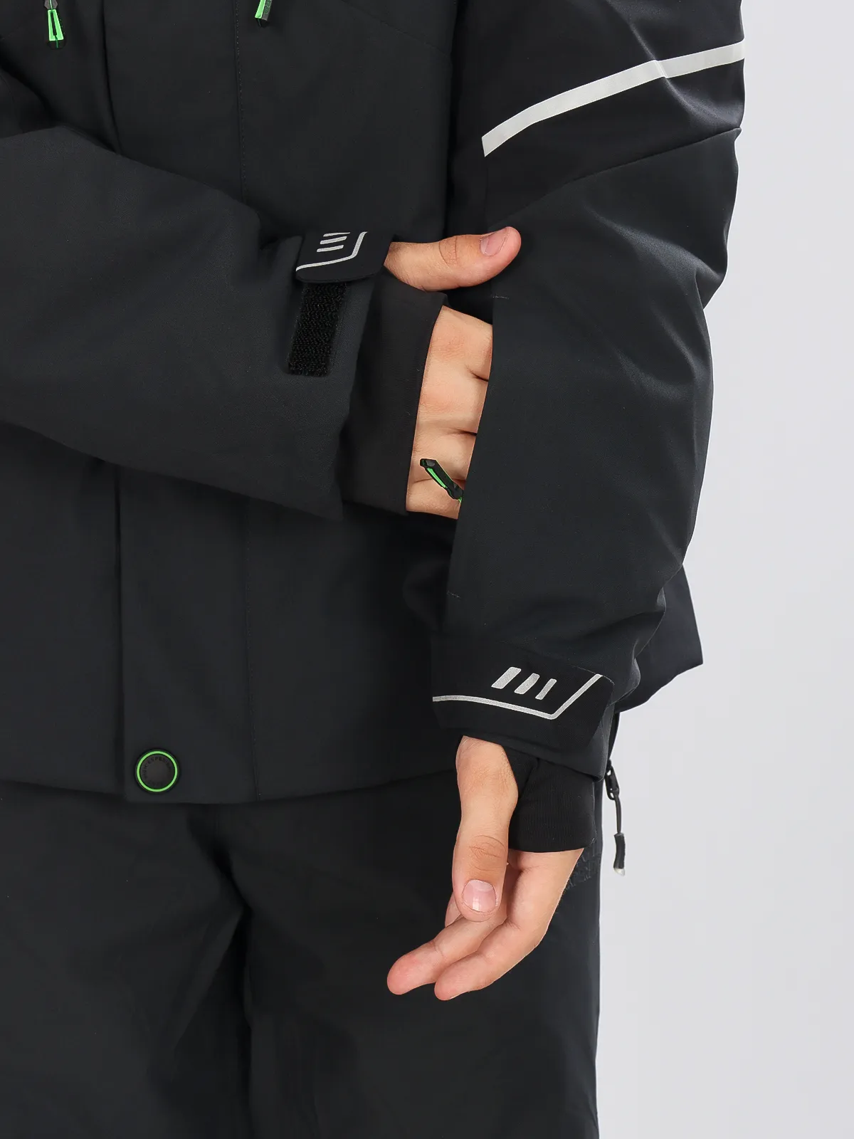 Манжеты на липучках с отверстием для пальцев и ветрозащитная юбка предотвращают попадание снега. Вентиляционные прорези под мышками регулируют температуру, добавляя комфорт при активном движении.