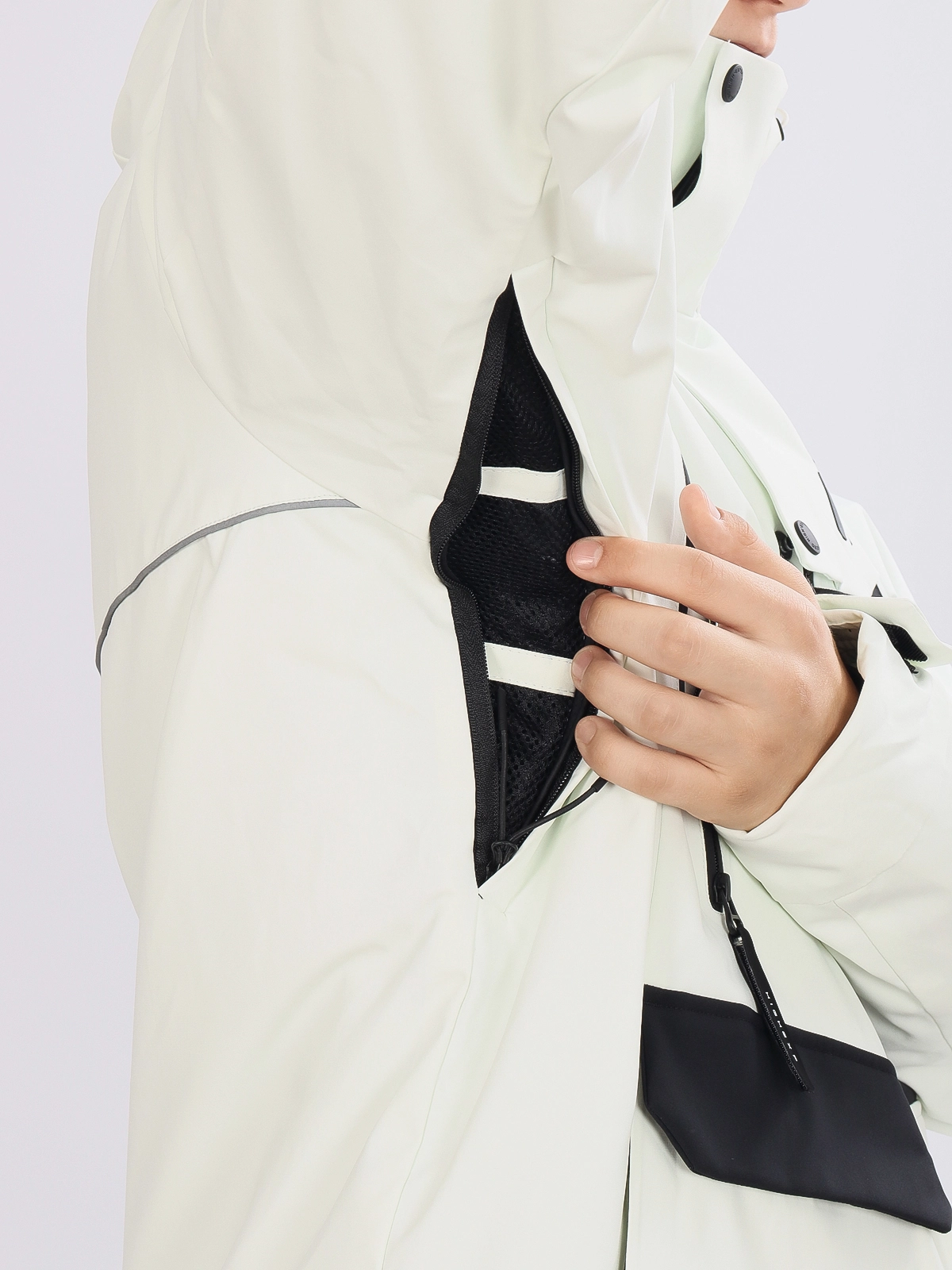 Съёмный регулируемый капюшон и манжеты на липучках с отверстиями для пальцев обеспечивают защиту от снега и холода. Прорези для вентиляции под мышками регулируют температуру и добавляют комфорт.