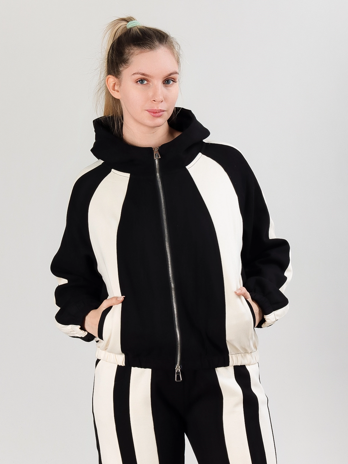 Худи на молнии с капюшоном идеально защищает от ветра и холодной погоды. Манжеты и пояс на резинке подчеркивают фигуру и позволяют регулировать посадку для максимального комфорта. Молния по всей длине позволяет быстро надевать и снимать худи, а капюшон добавляет дополнительную защиту от внешних факторов.
