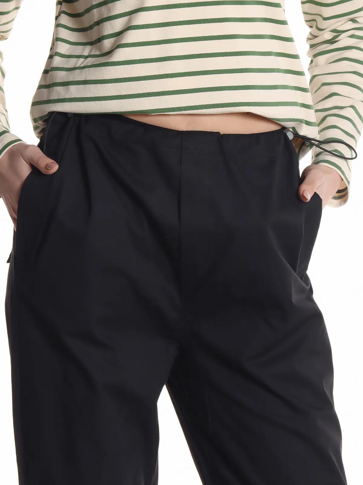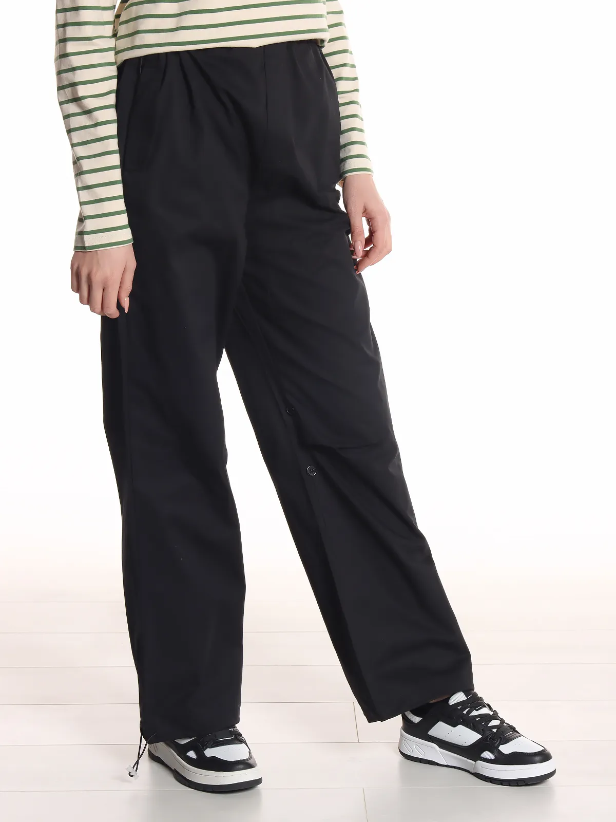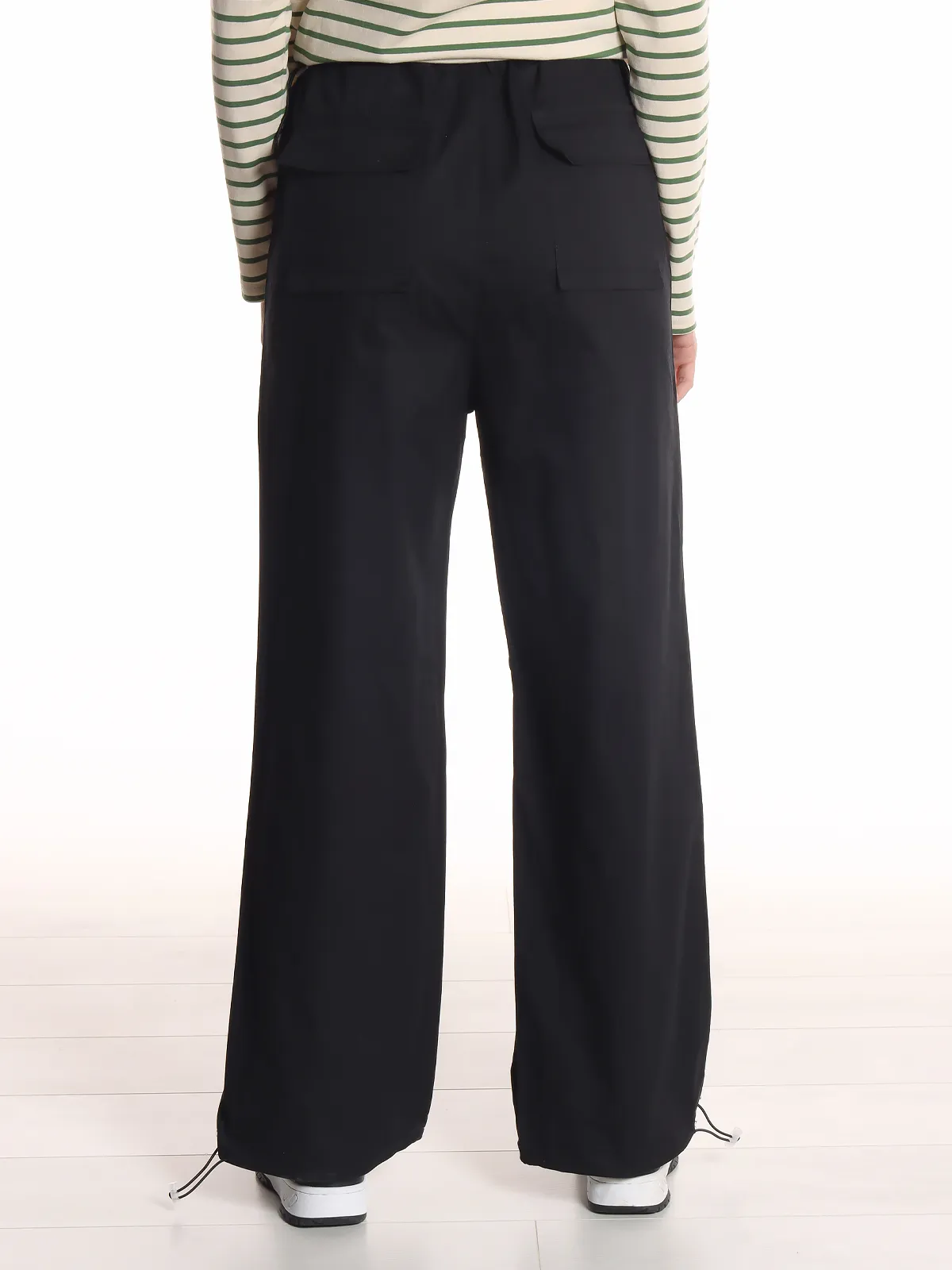 - Манжеты: с кулиской, позволяющие регулировать форму брюк и подгонять их по фигуре.