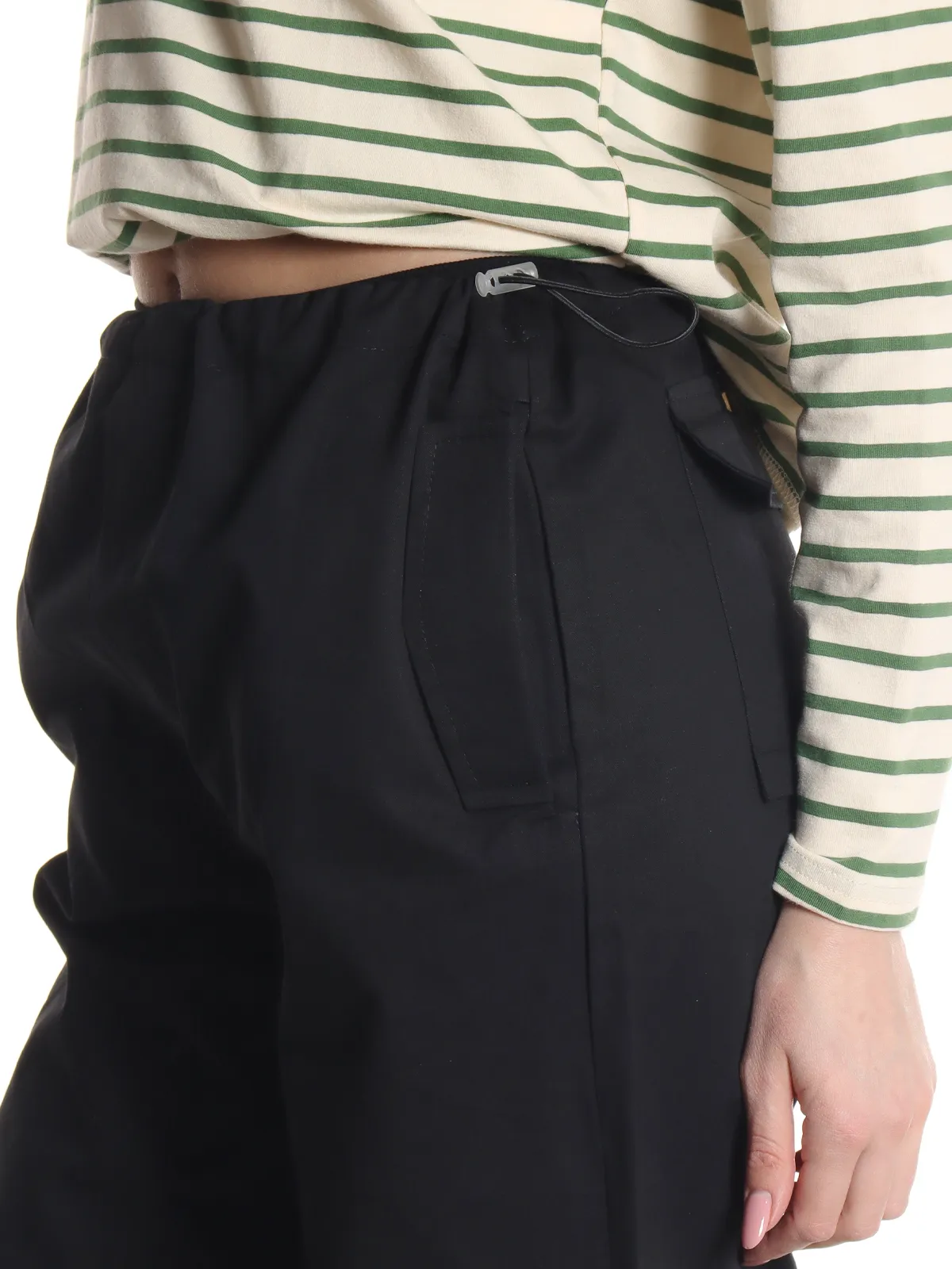 - Пояс: удобный, затягивается по бокам с помощью кулиски для лучшей посадки.