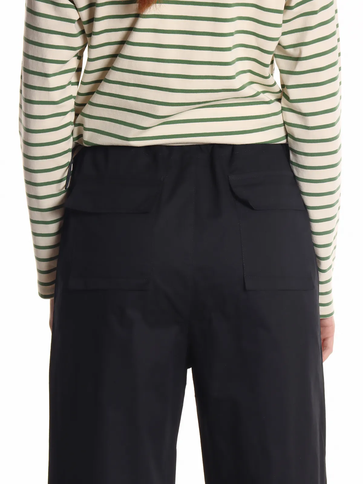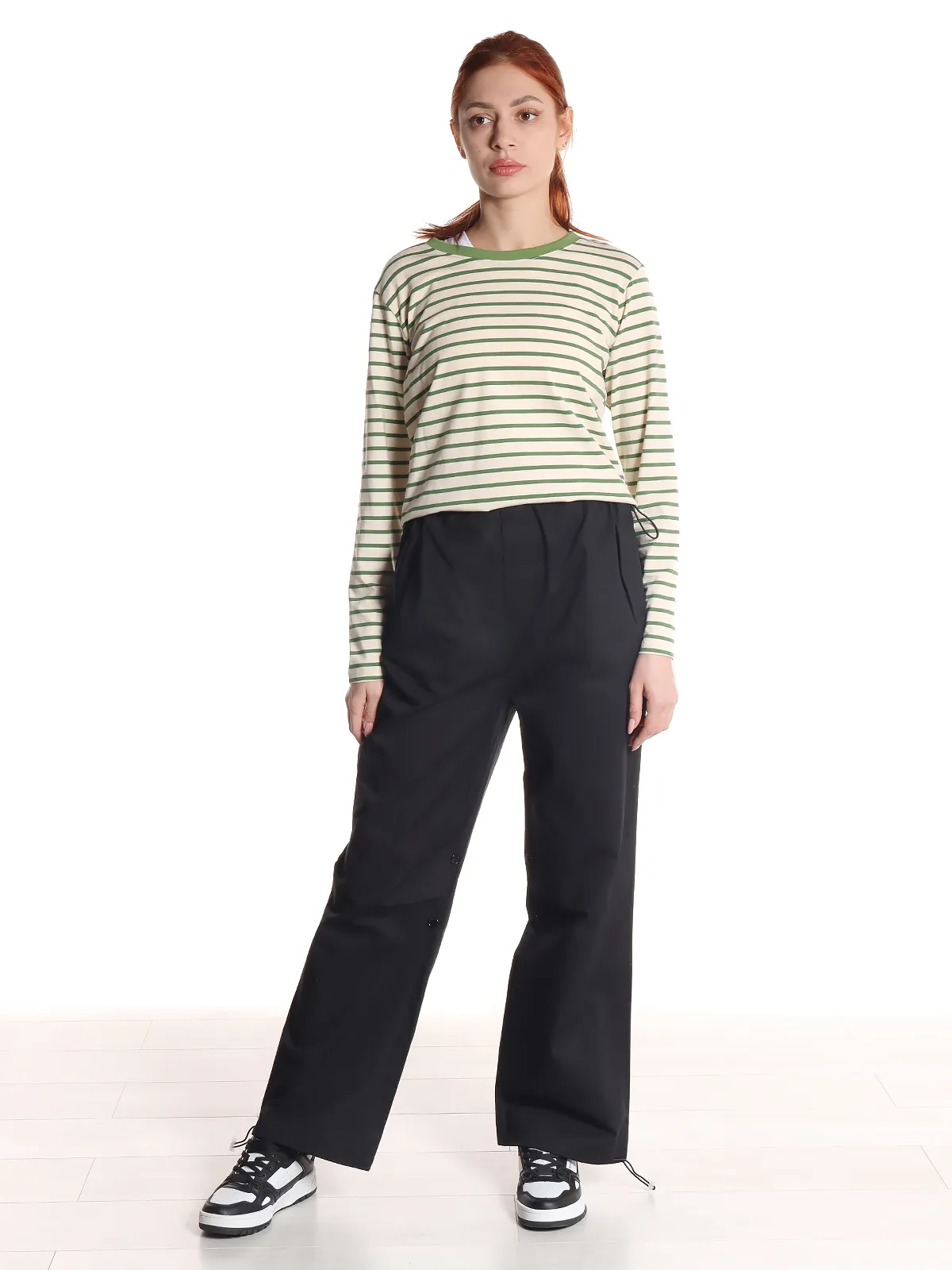 Эти женские брюки выполнены из качественного хлопка, что обеспечивает легкость и воздухопроницаемость. Брюки имеют удобный пояс, который можно затянуть с помощью кулиски, что гарантирует идеальную посадку. Манжеты с кулиской позволяют регулировать форму брюк, подстраиваясь под ваш стиль и комфорт. Боковые и задние карманы придают модели функциональность, создавая дополнительное удобство в повседневной носке.
