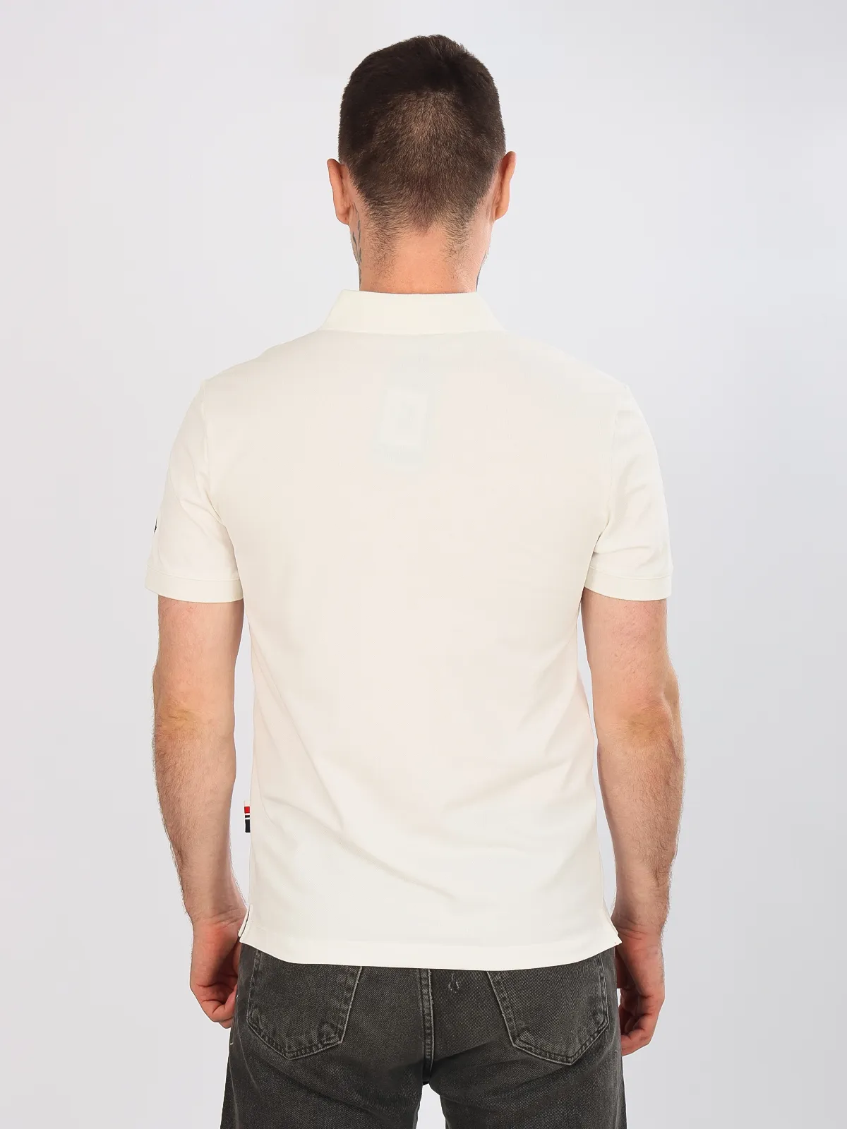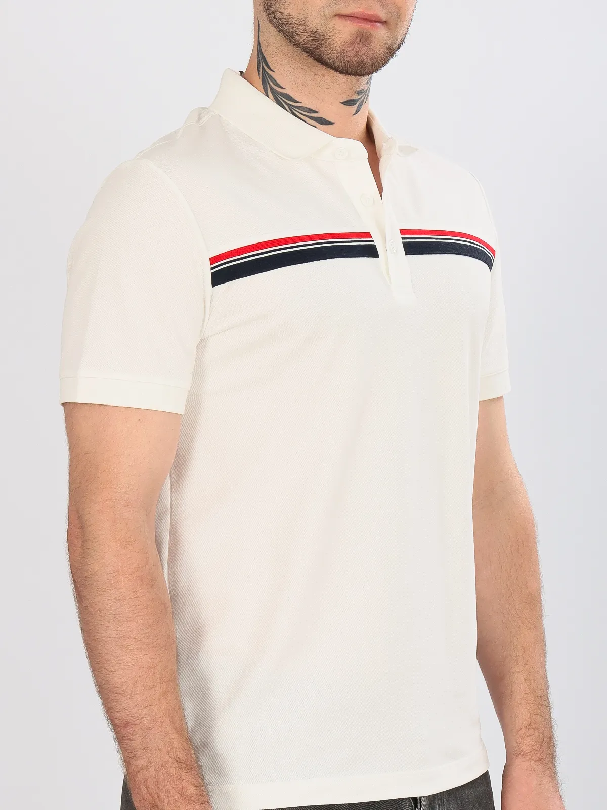 Футболка выполнена из хлопка с добавлением спандекса, что обеспечивает комфортную посадку, хорошую воздухопроницаемость и свободу движений. Воротник на пуговицах добавляет элегантности и позволяет регулировать посадку по вырезу.