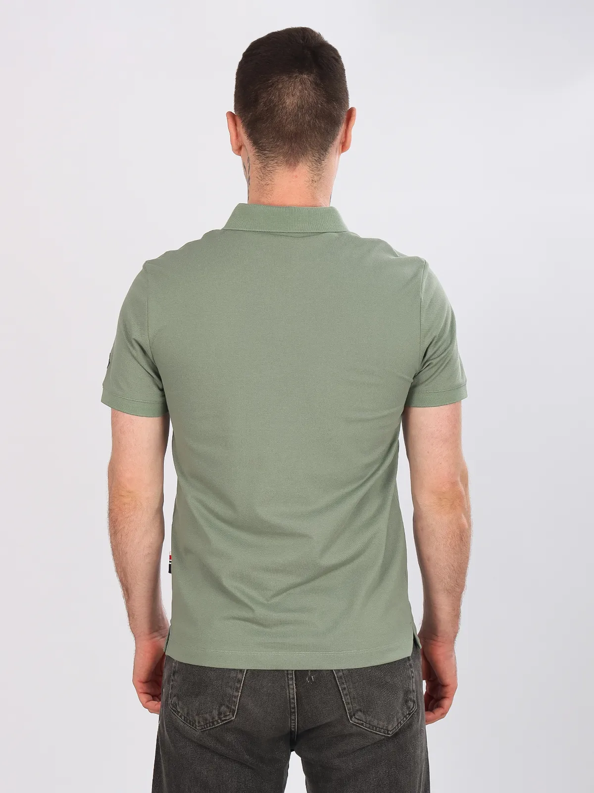 Футболка выполнена из хлопка с добавлением спандекса, что обеспечивает комфортную посадку, хорошую воздухопроницаемость и свободу движений. Воротник на пуговицах добавляет элегантности и позволяет регулировать посадку по вырезу.