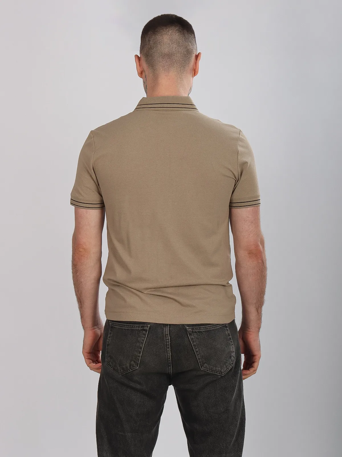 Футболка выполнена из хлопка с добавлением спандекса, что обеспечивает комфортную посадку, хорошую воздухопроницаемость и свободу движений. Воротник на пуговицах добавляет элегантности и позволяет регулировать посадку по вырезу.