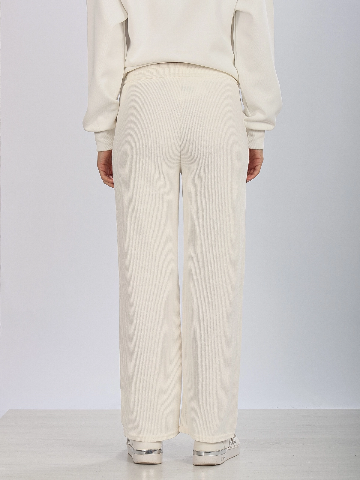 Модель выполнена из высококачественного вельвета, который сочетает в себе мягкость и прочность. Прямой крой и боковые карманы добавляют практичности, а пояс на резинке с регулируемым шнурком позволяет настроить посадку брюков по фигуре.