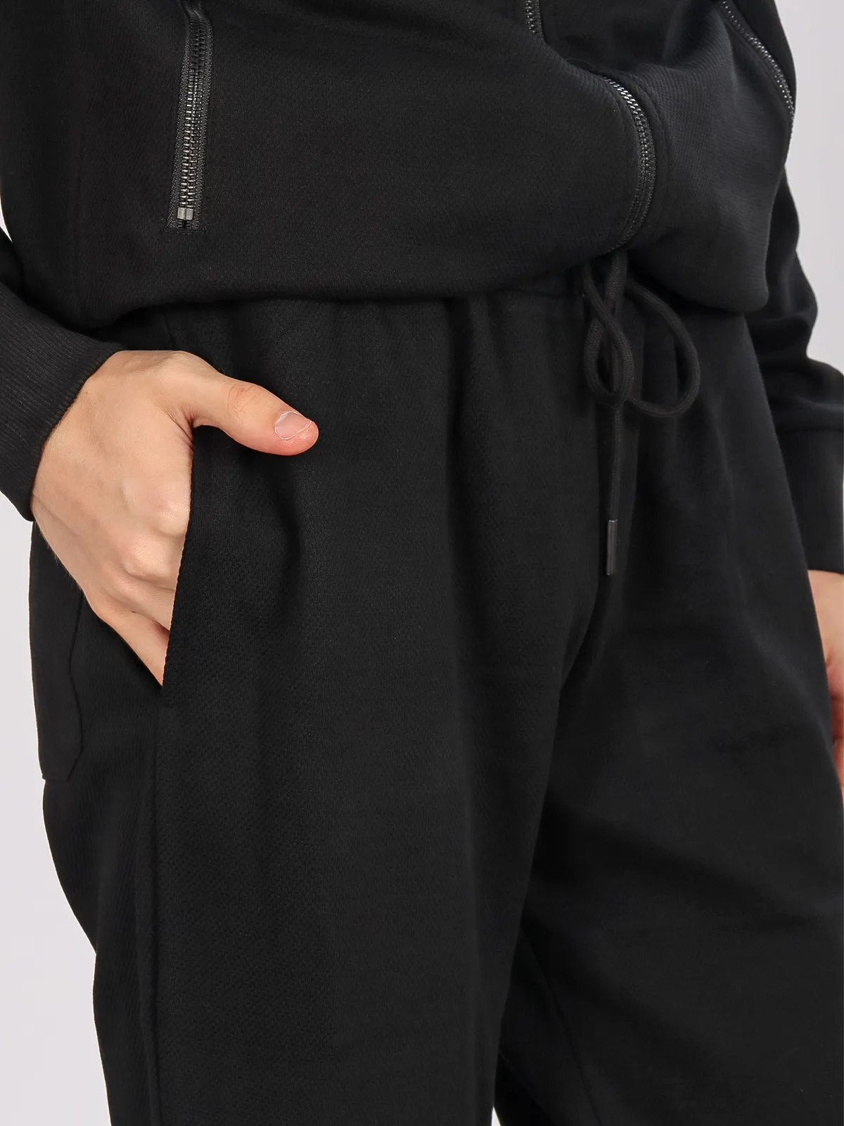 • Эластичные манжеты на штанинах: фиксируют брюки на месте, добавляя удобство во время движения.