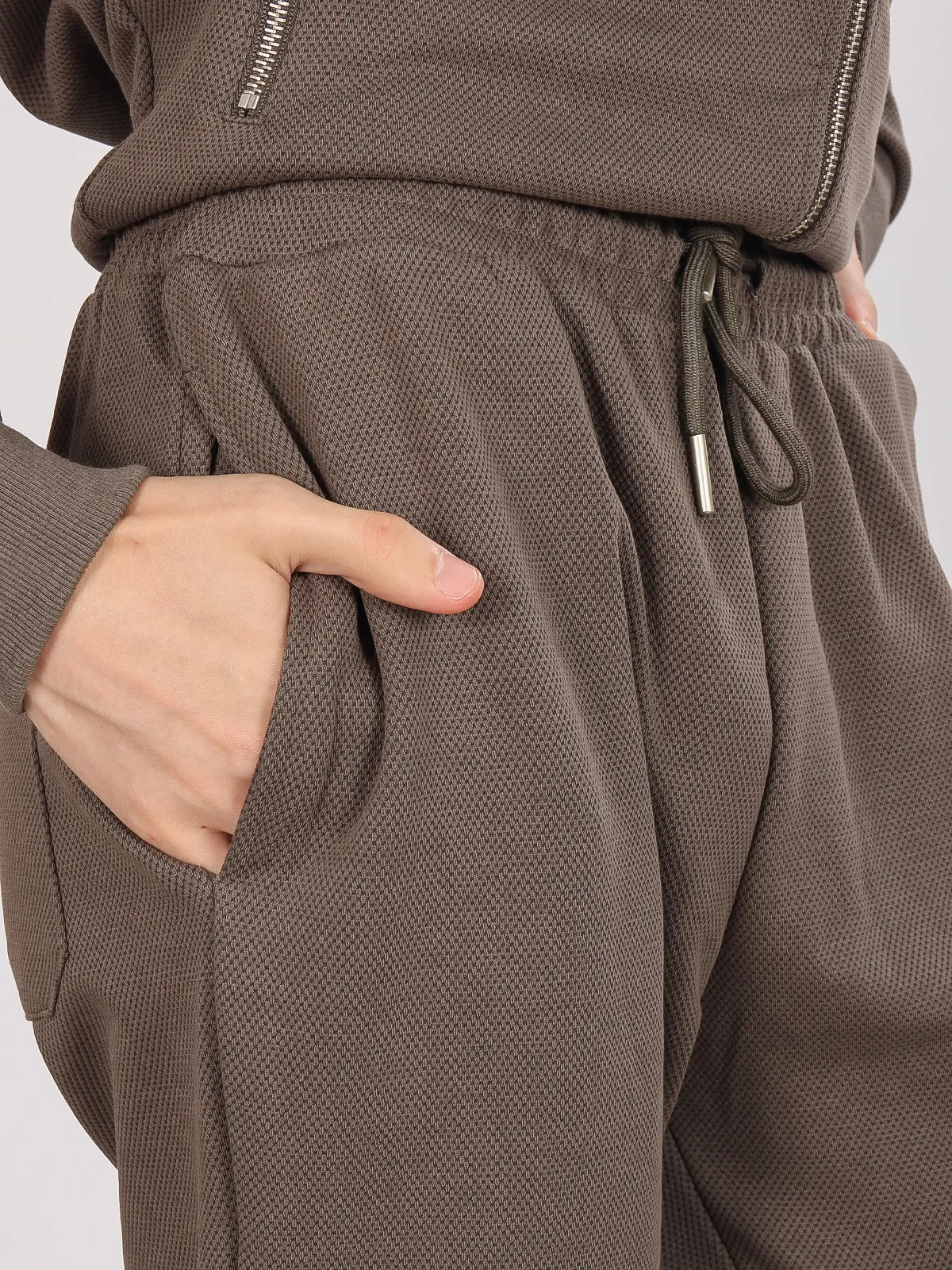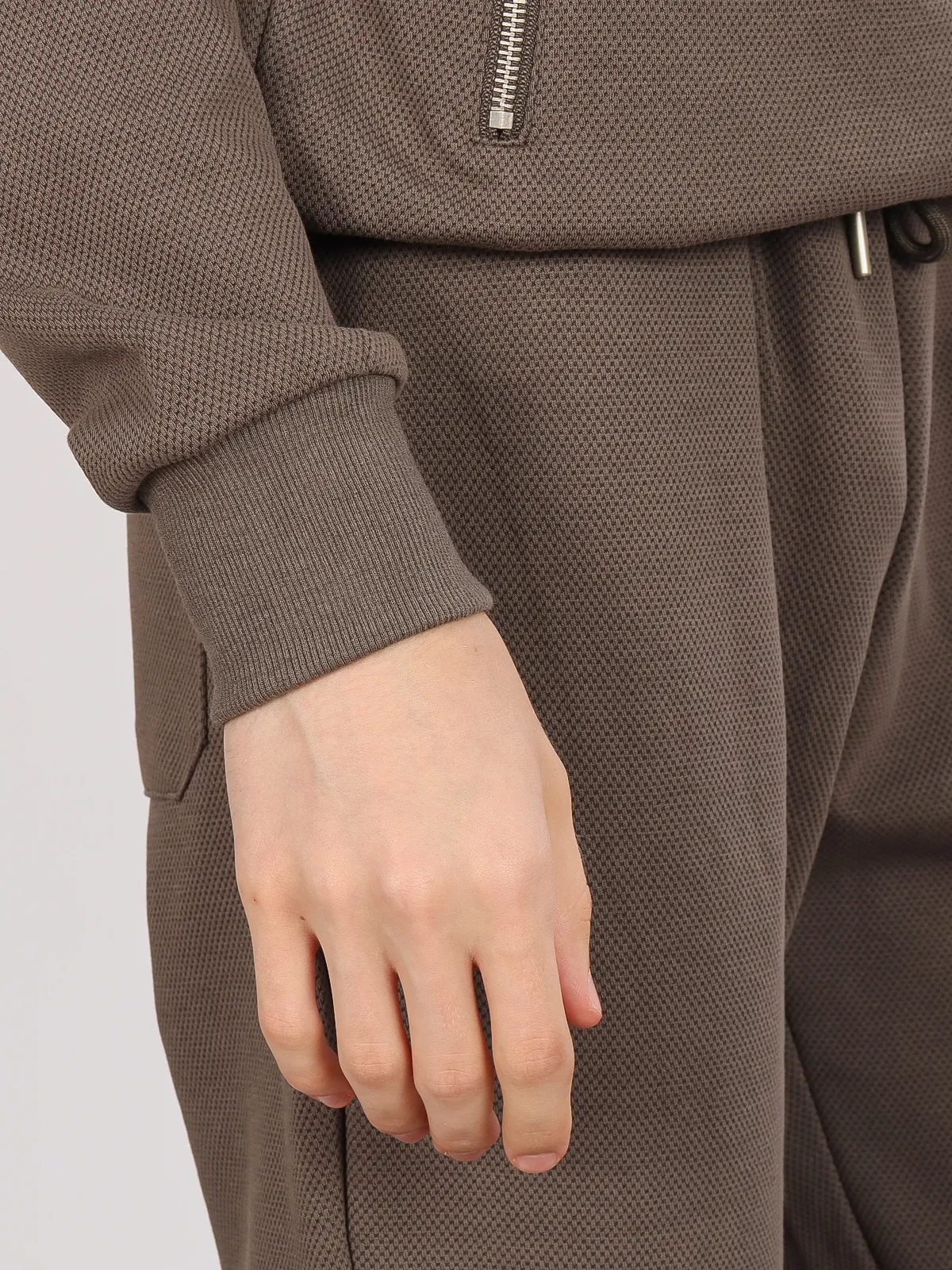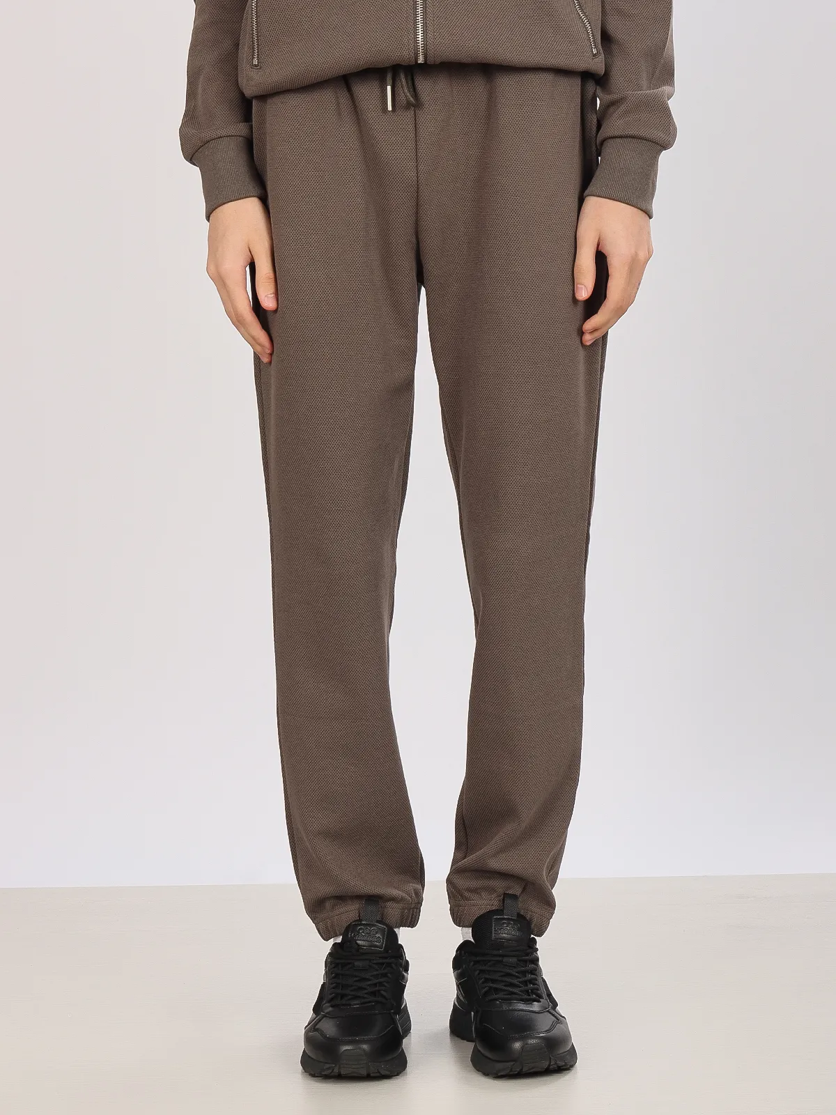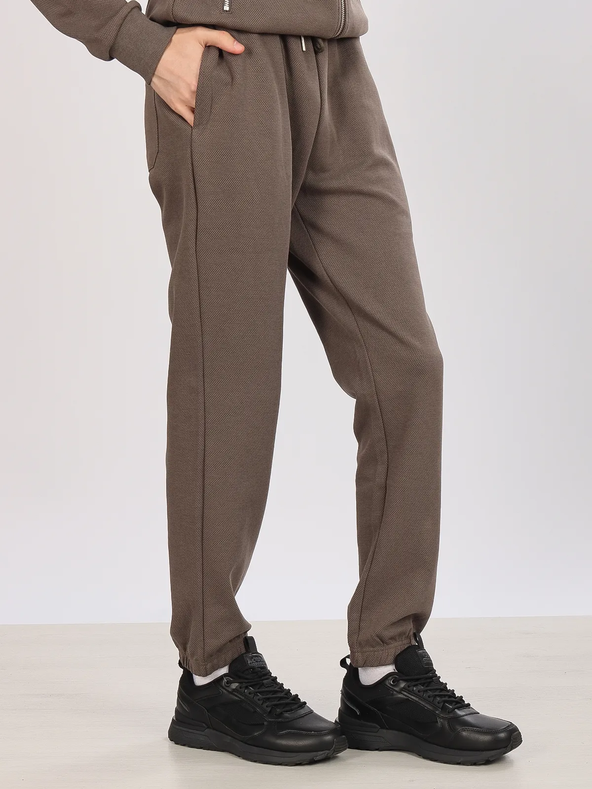 - Эластичные манжеты на штанинах: фиксируют брюки на месте, добавляя удобство во время движения.