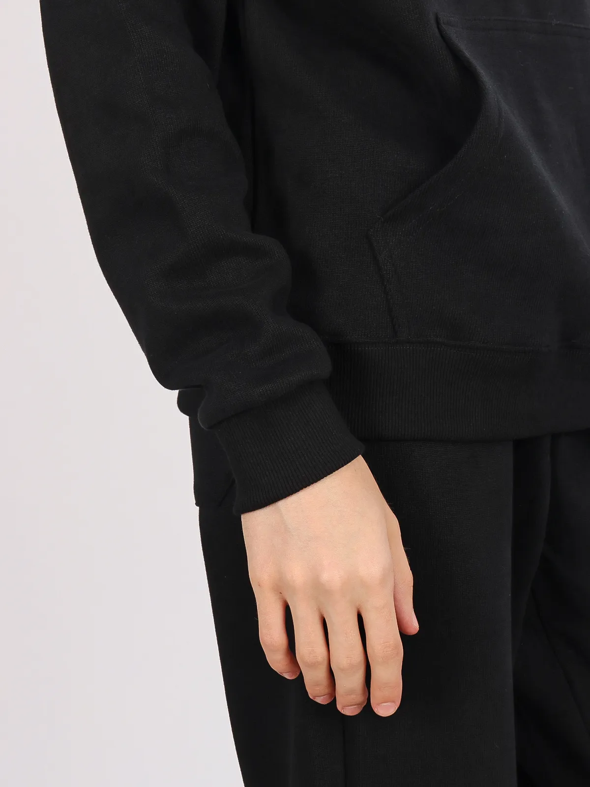 Худи выполнено с удобным капюшоном и вместительным карманом-кенгуру, который добавляет практичности. Брюки со свободным кроем и боковыми карманами обеспечивают свободу движений и удобство в повседневной носке.