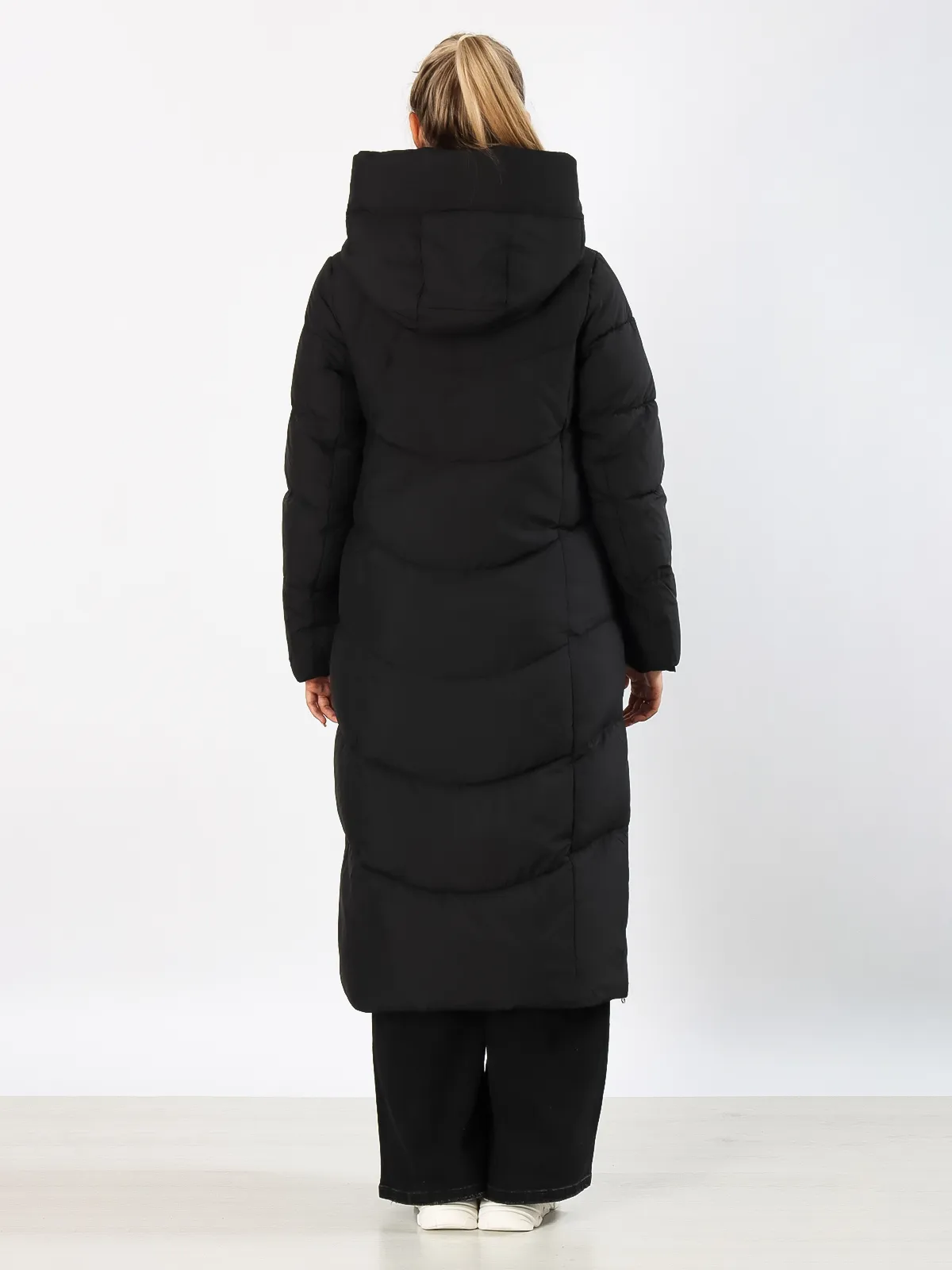 Дизайн: Длинный крой создает элегантный силуэт и надежно защищает от холода. Объемный капюшон сохраняет тепло и защищает от осадков. Разрезы на молниях по бокам добавляют свободу движений.