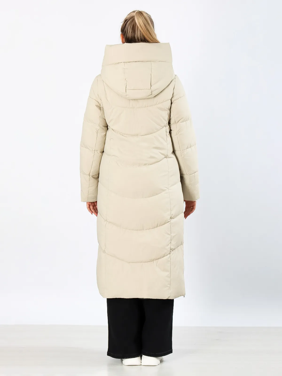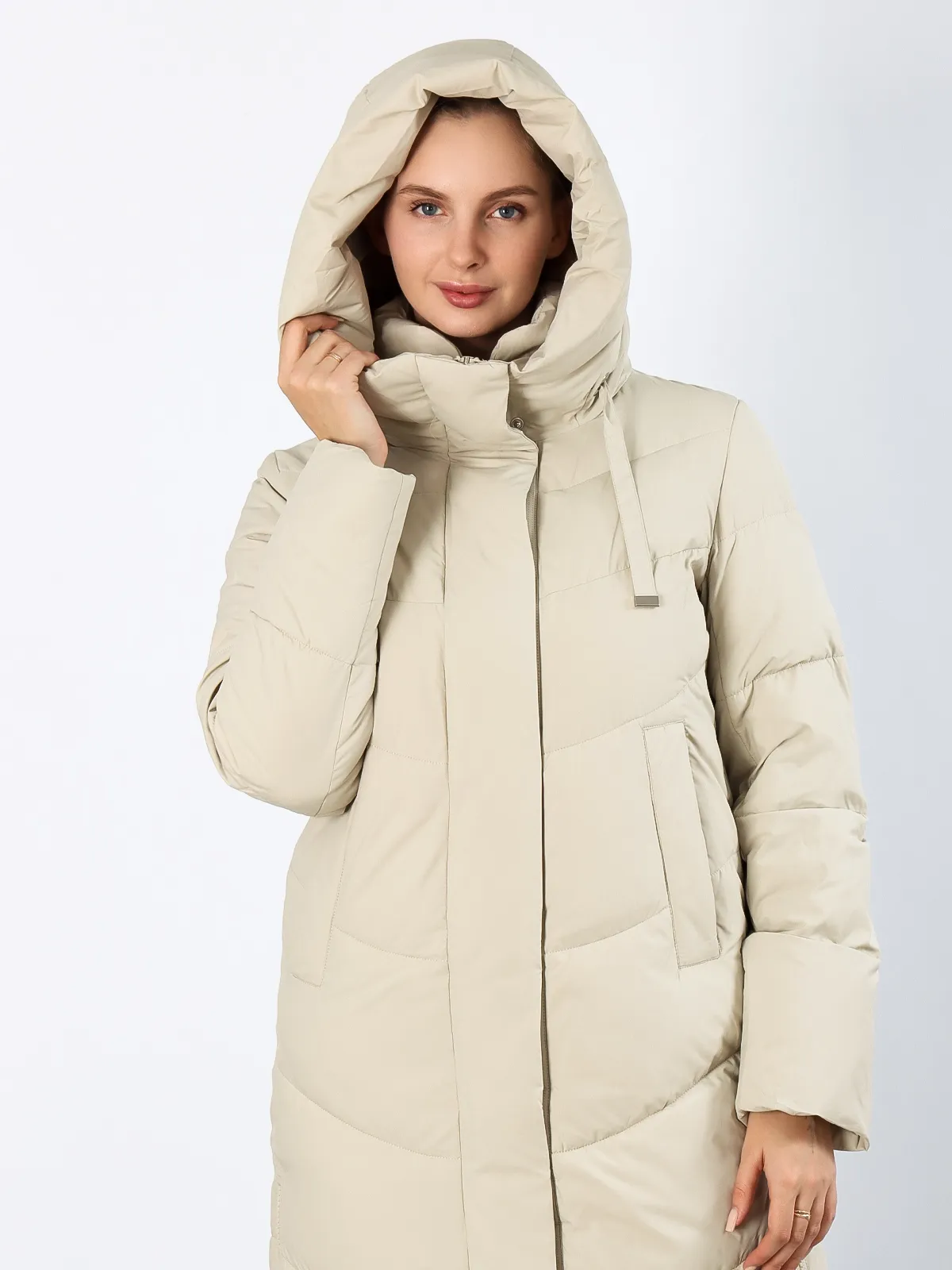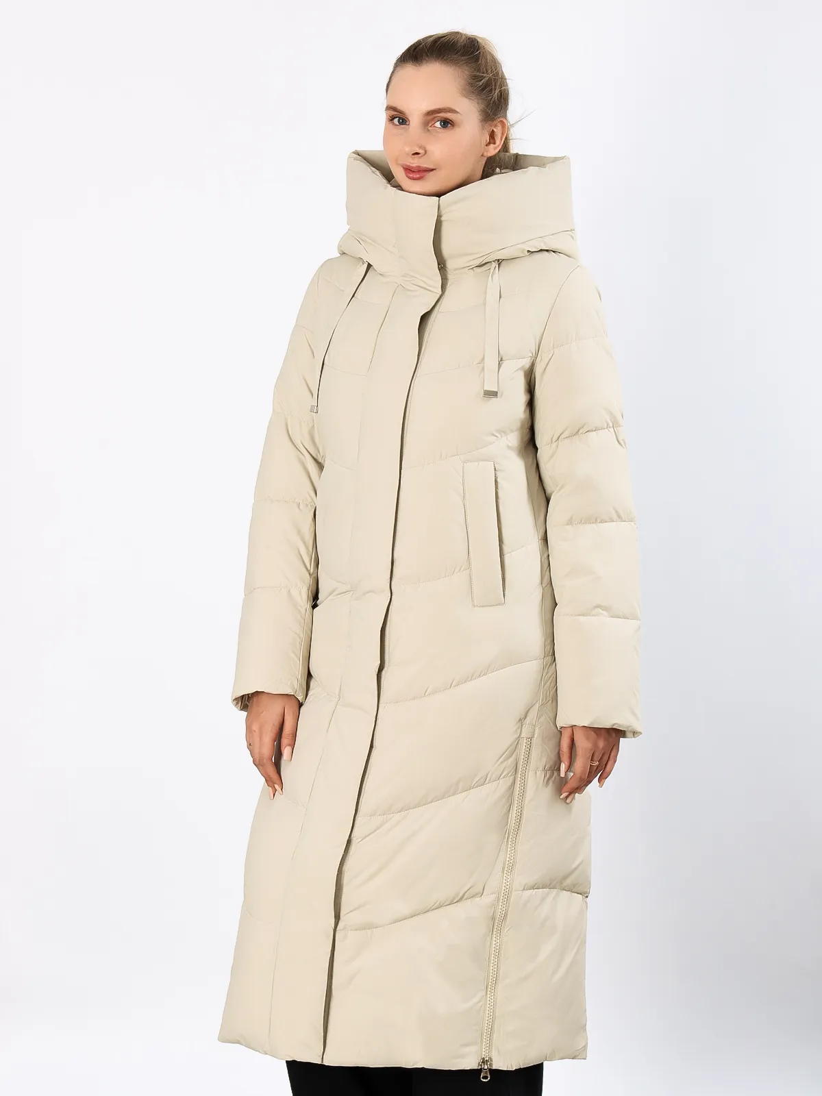 Дизайн: Длинный крой создает элегантный силуэт и надежно защищает от холода. Объемный капюшон сохраняет тепло и защищает от осадков. Разрезы на молниях по бокам добавляют свободу движений.