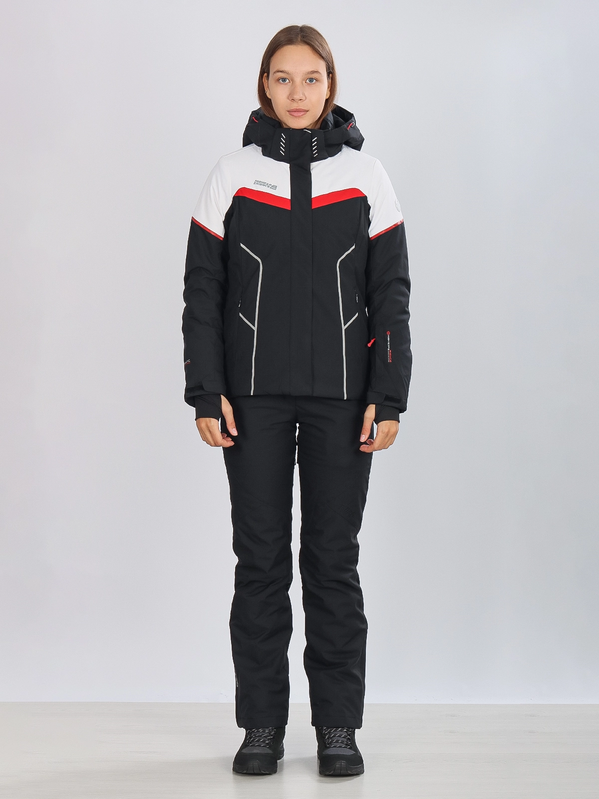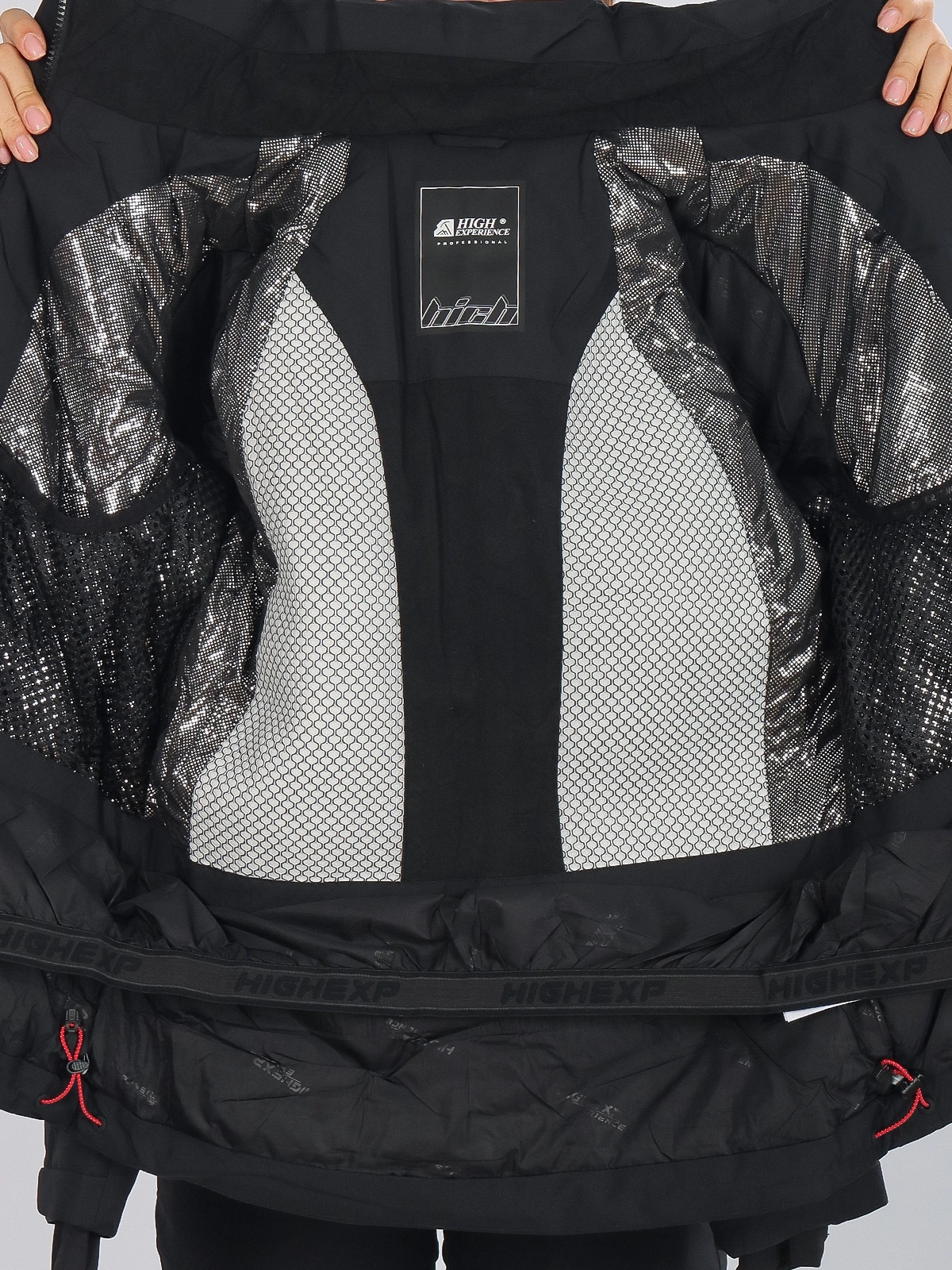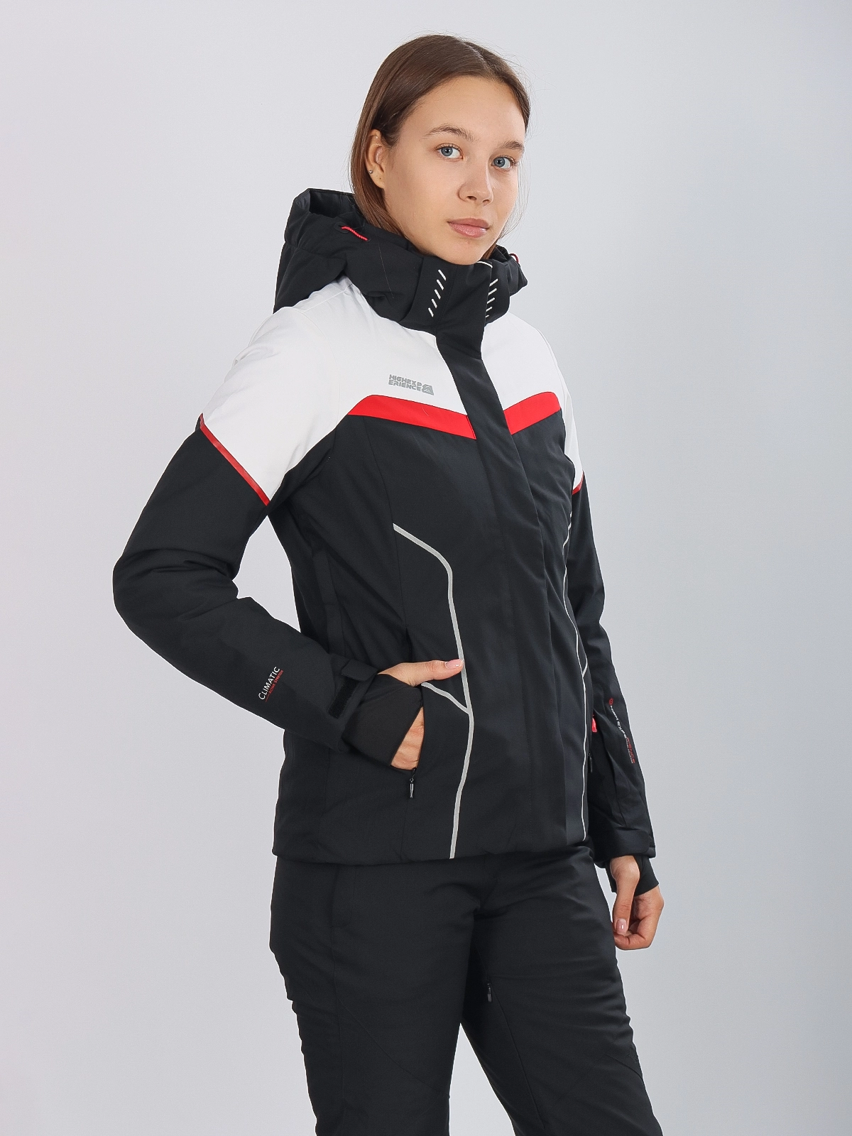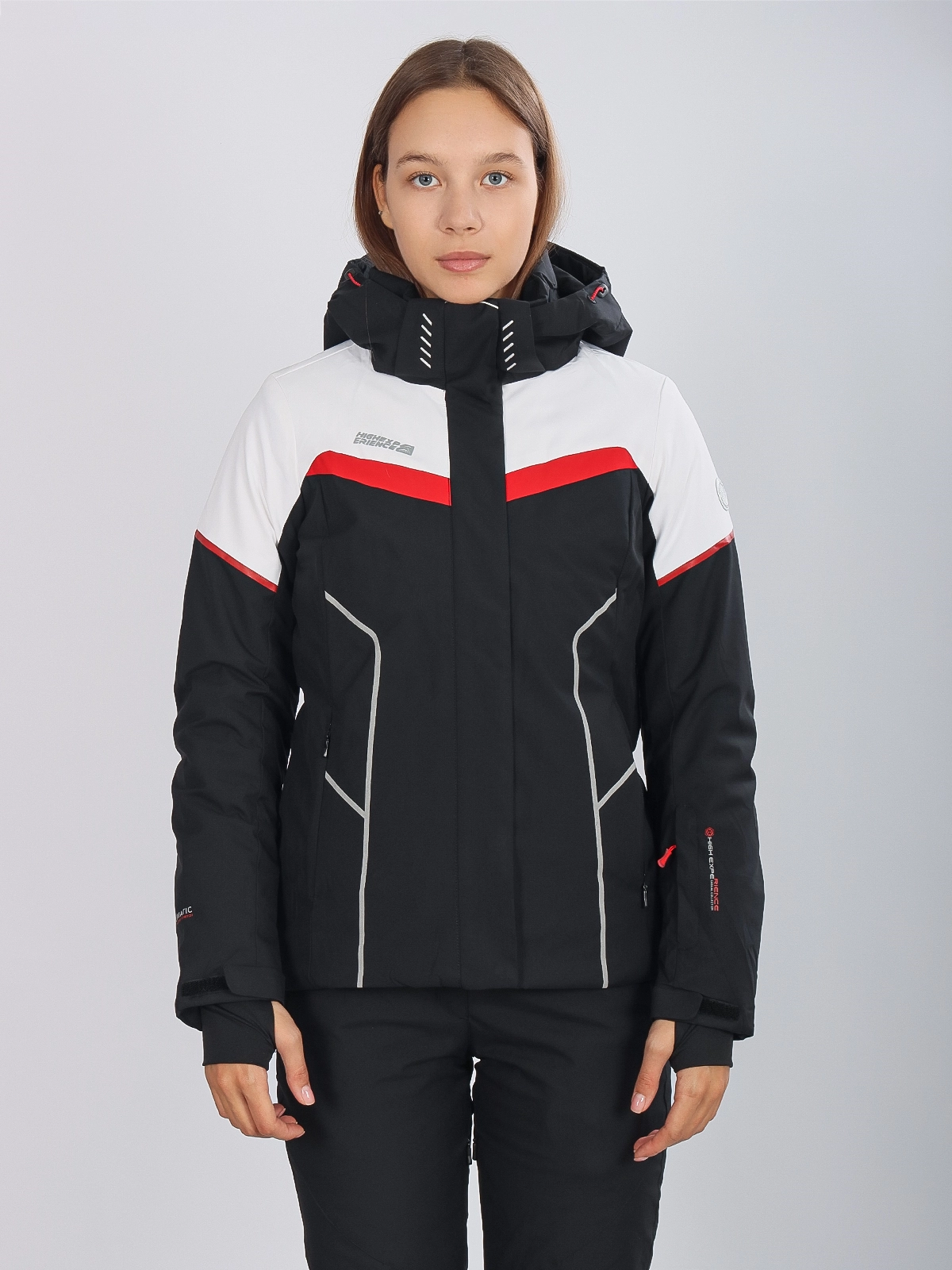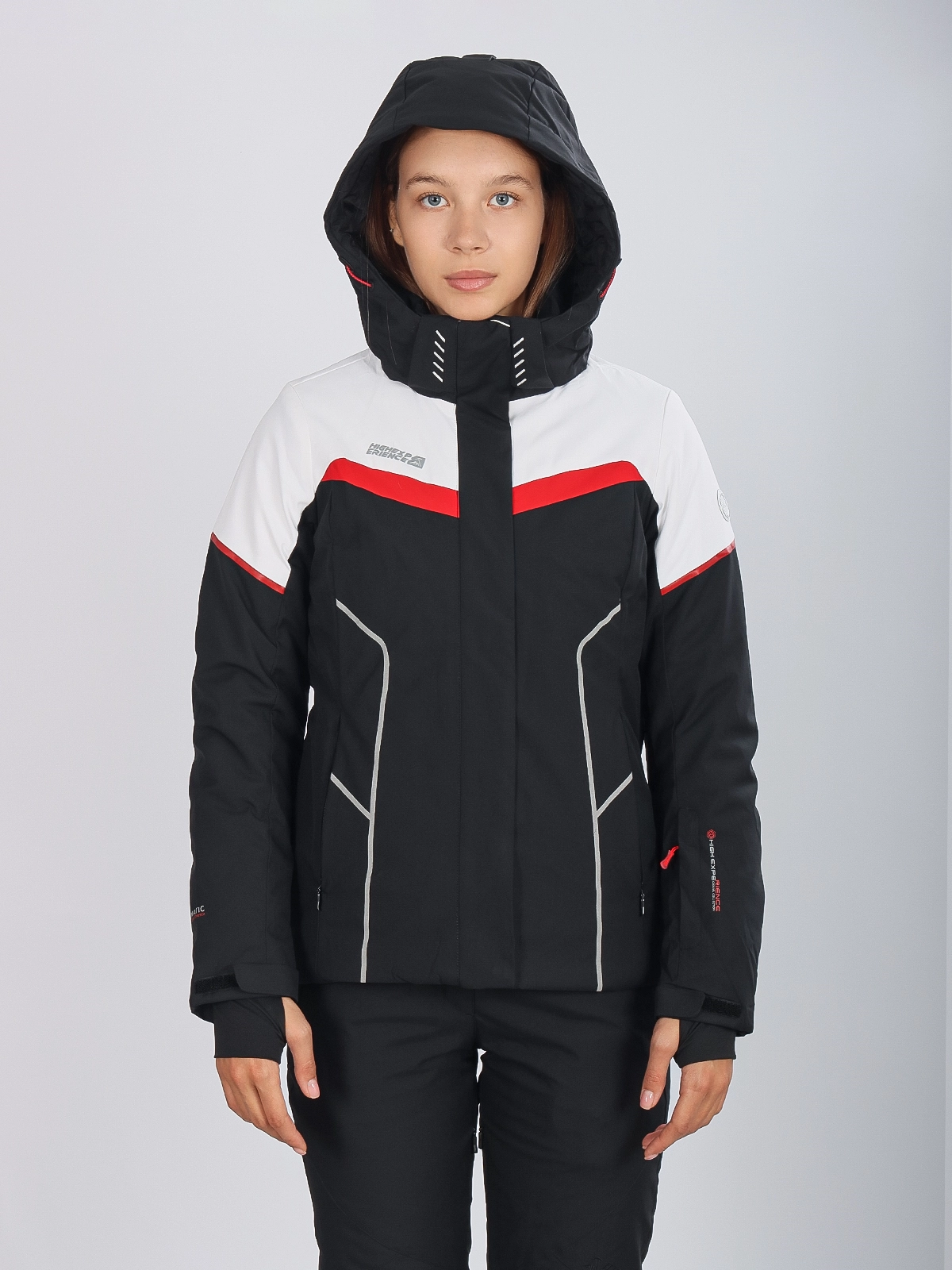 Горнолыжная куртка High Experience RH64038 — стильная женская куртка черного цвета, идеально подходящая для активных зимних видов спорта и отдыха на свежем воздухе.
