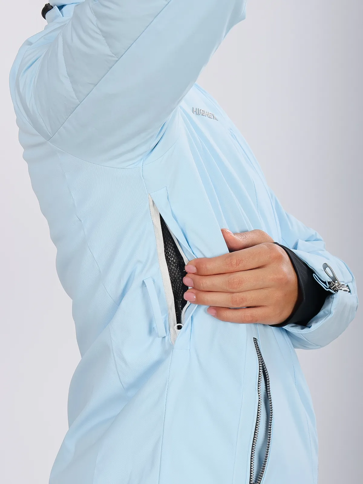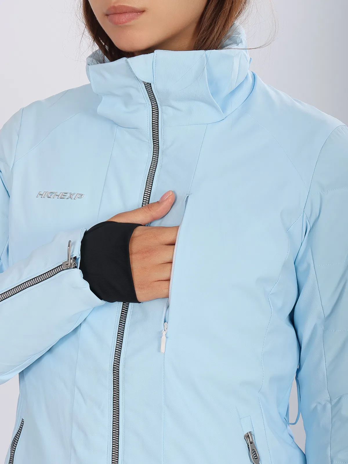 Горнолыжная куртка High Experience RH64089 — женская куртка голубого цвета, идеальная для активного отдыха, горных лыж и сноуборда.