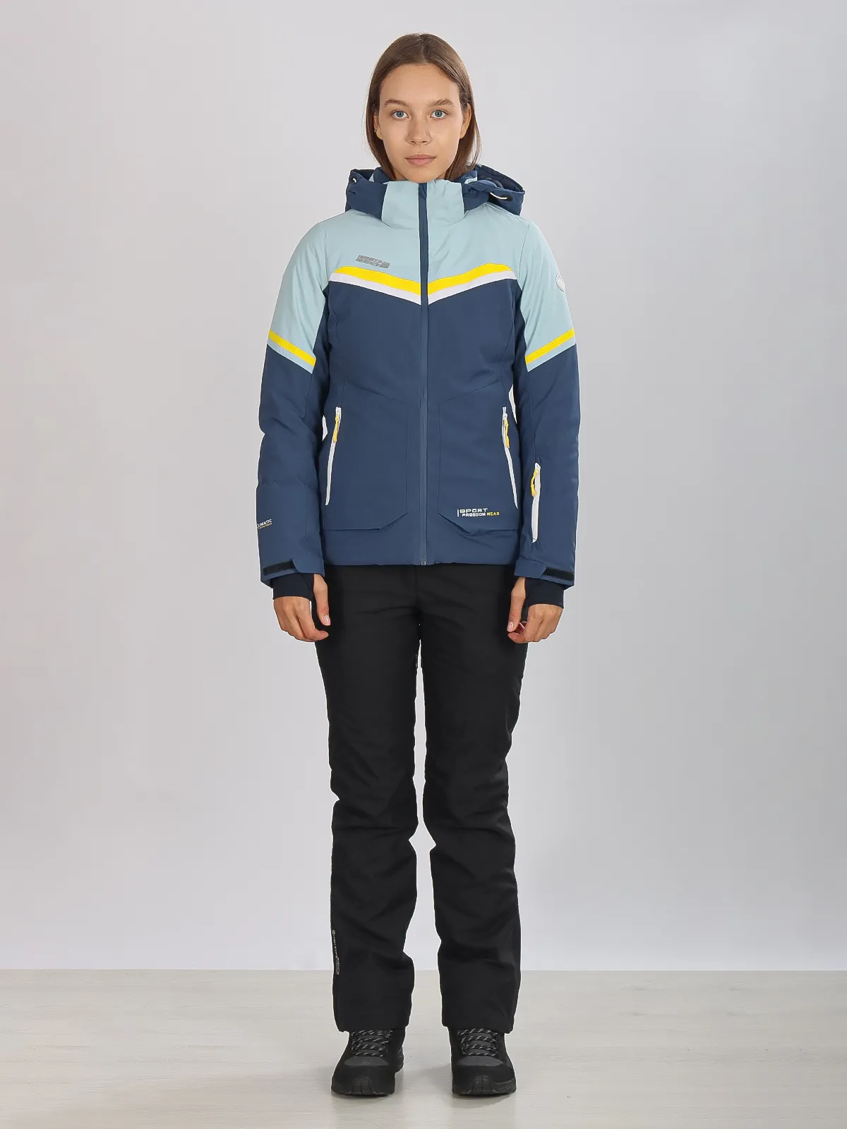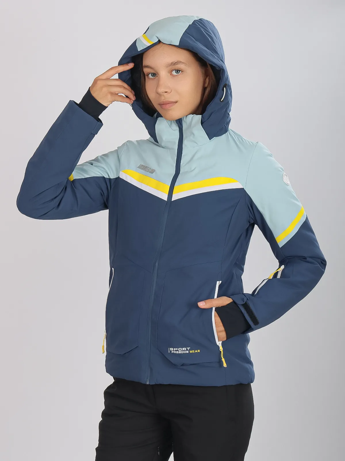 Женская горнолыжная куртка High Experience RH64035 — стильная голубая куртка, идеально подходящая для катания на лыжах, сноуборде и активного зимнего отдыха.