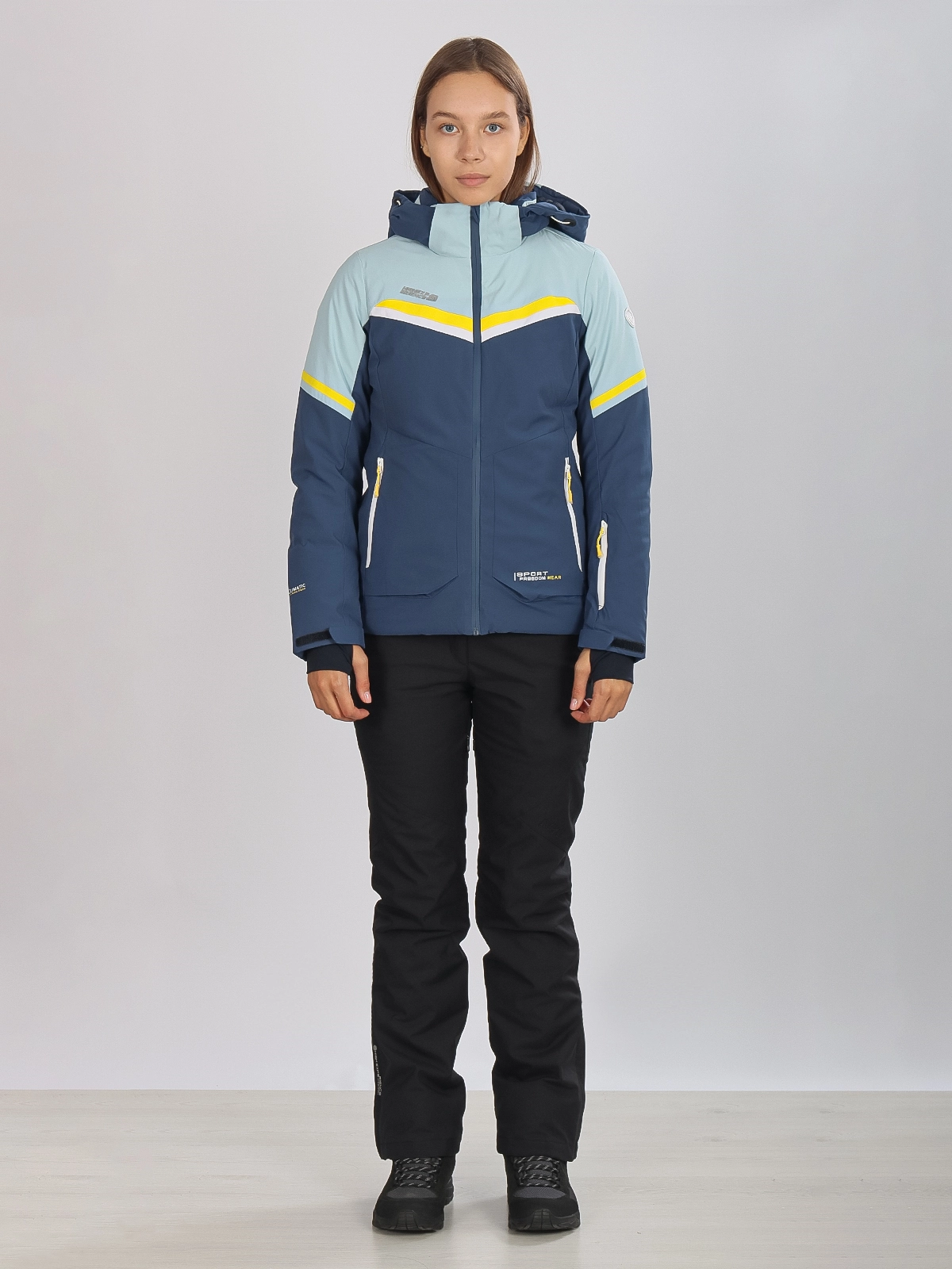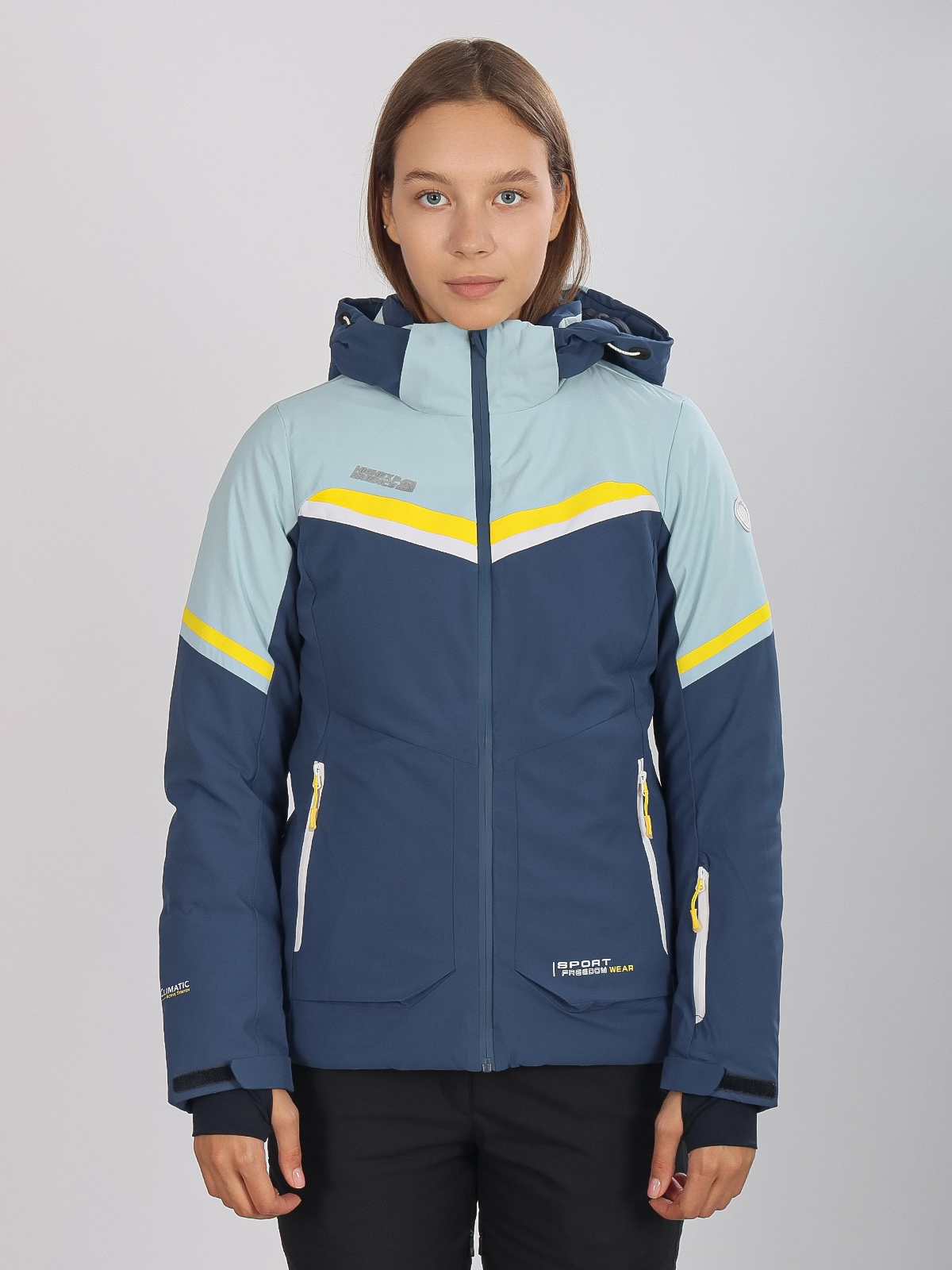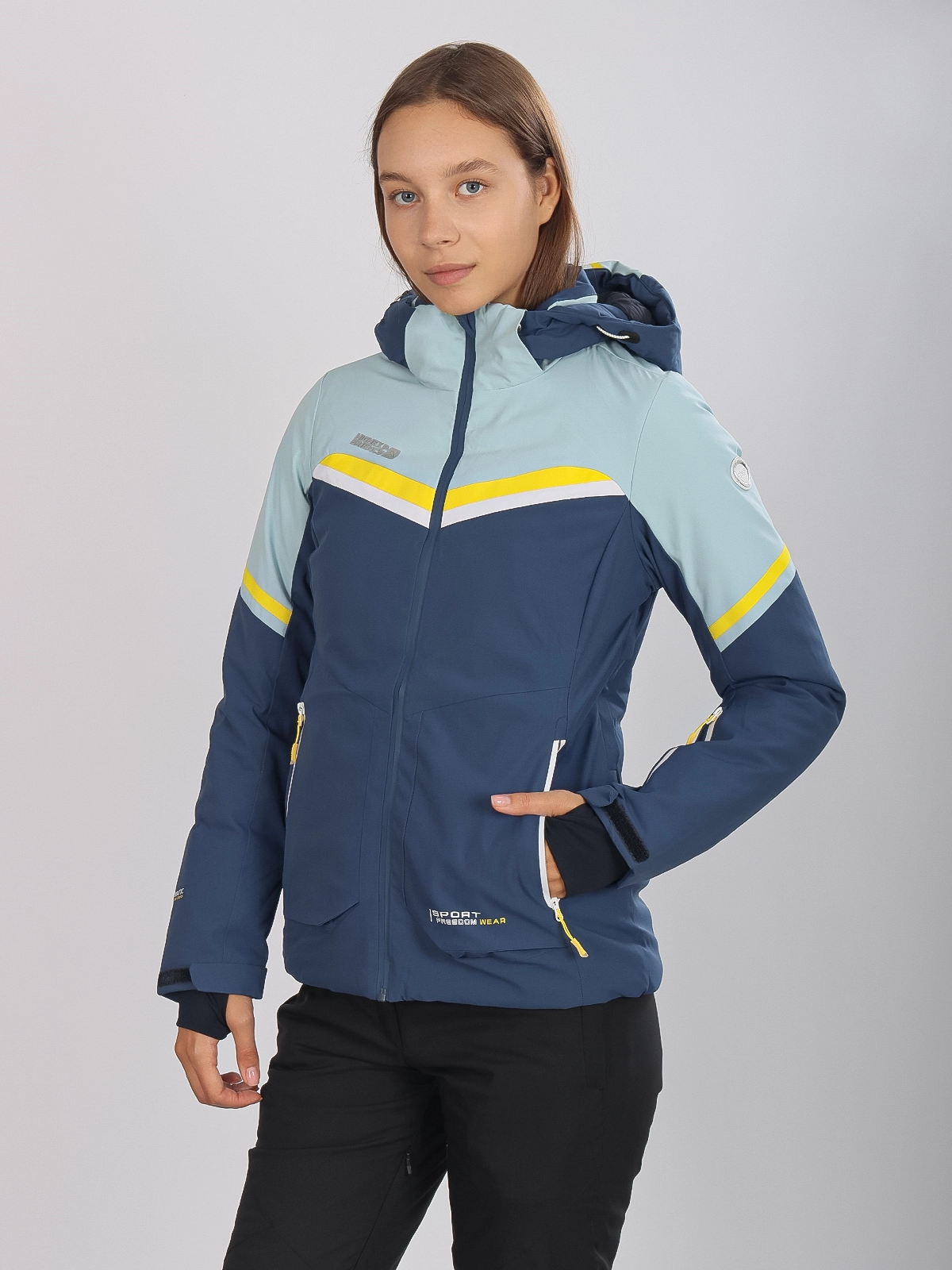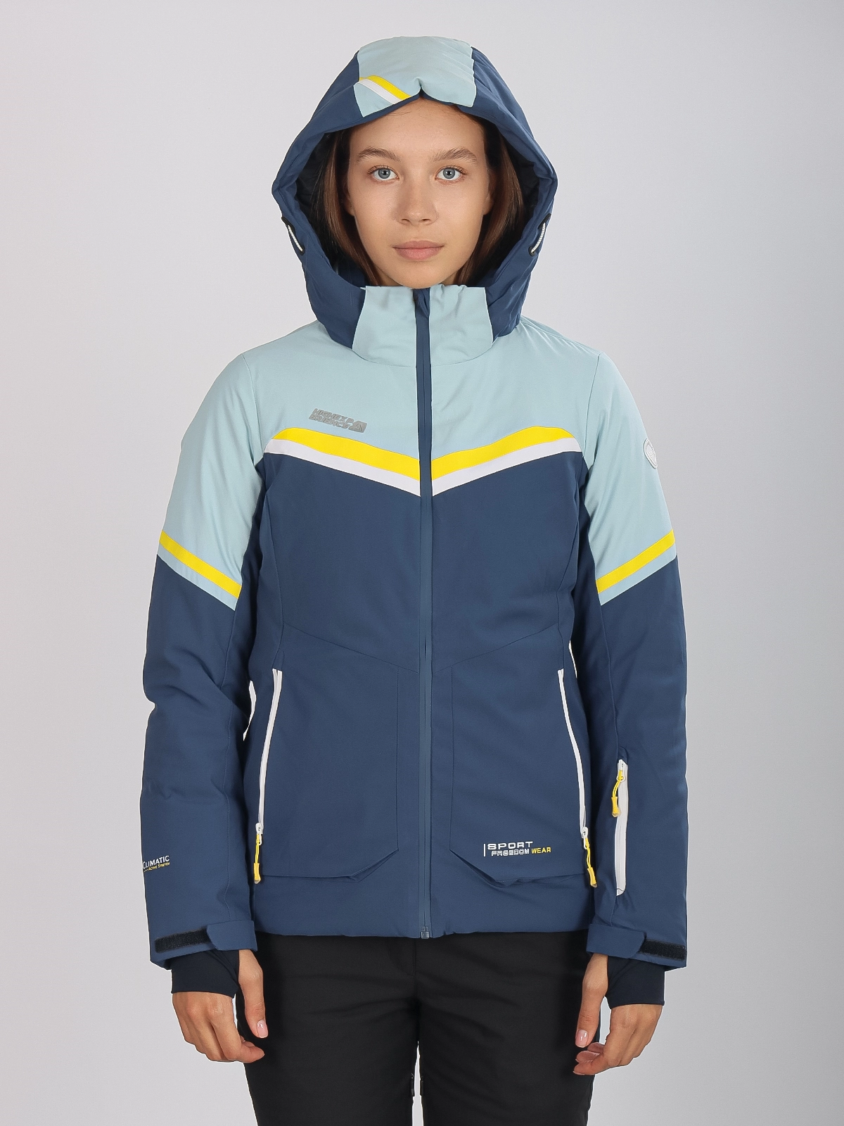 Женская горнолыжная куртка High Experience RH64035 — стильная голубая куртка, идеально подходящая для катания на лыжах, сноуборде и активного зимнего отдыха.