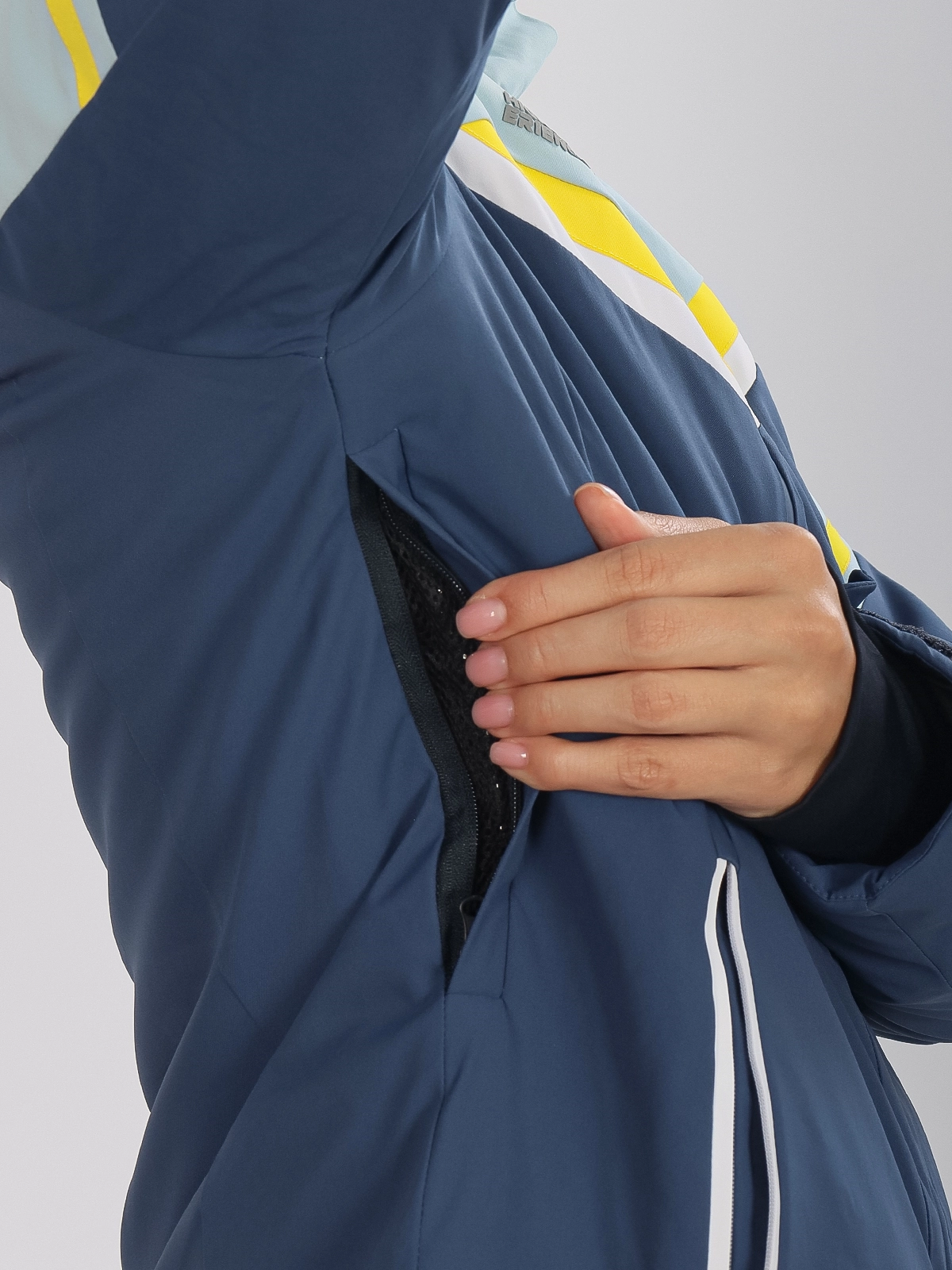 Практичный съемный регулируемый капюшон защищает от снега и ветра, а прорези для вентиляции подмышками помогают регулировать температуру внутри куртки.
