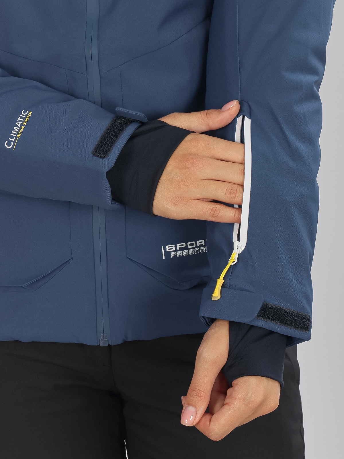 Функциональные карманы: накладные карманы на молнии, карман для ski pass и внутренние карманы обеспечивают удобство хранения мелочей. Манжеты на липучках и снегозащитная юбка предотвращают попадание снега.