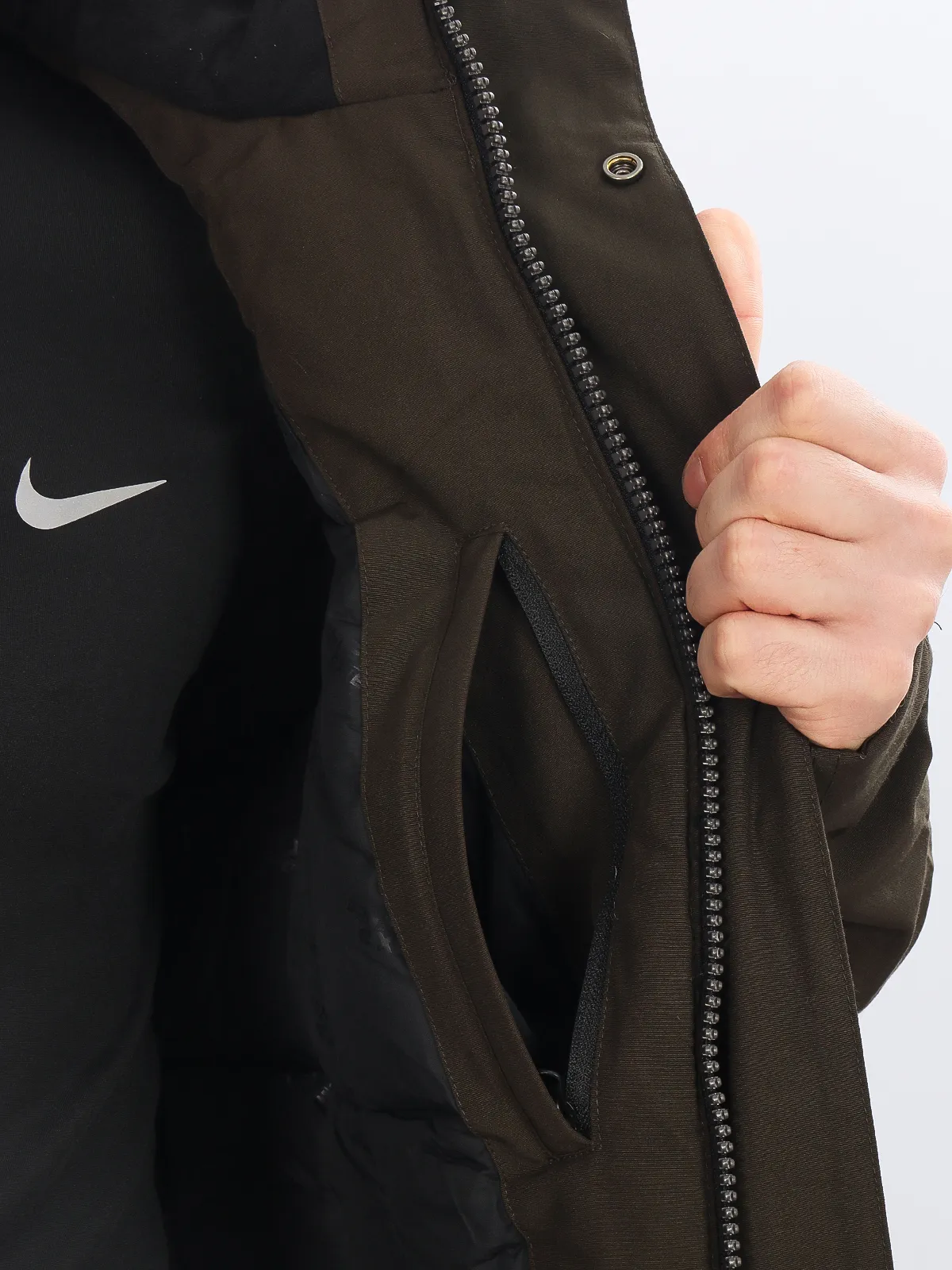 Внутри есть лямки, которые позволяют снять куртку в помещении, чтобы не перегреться, но при этом не нужно полностью снимать верхнюю одежду.