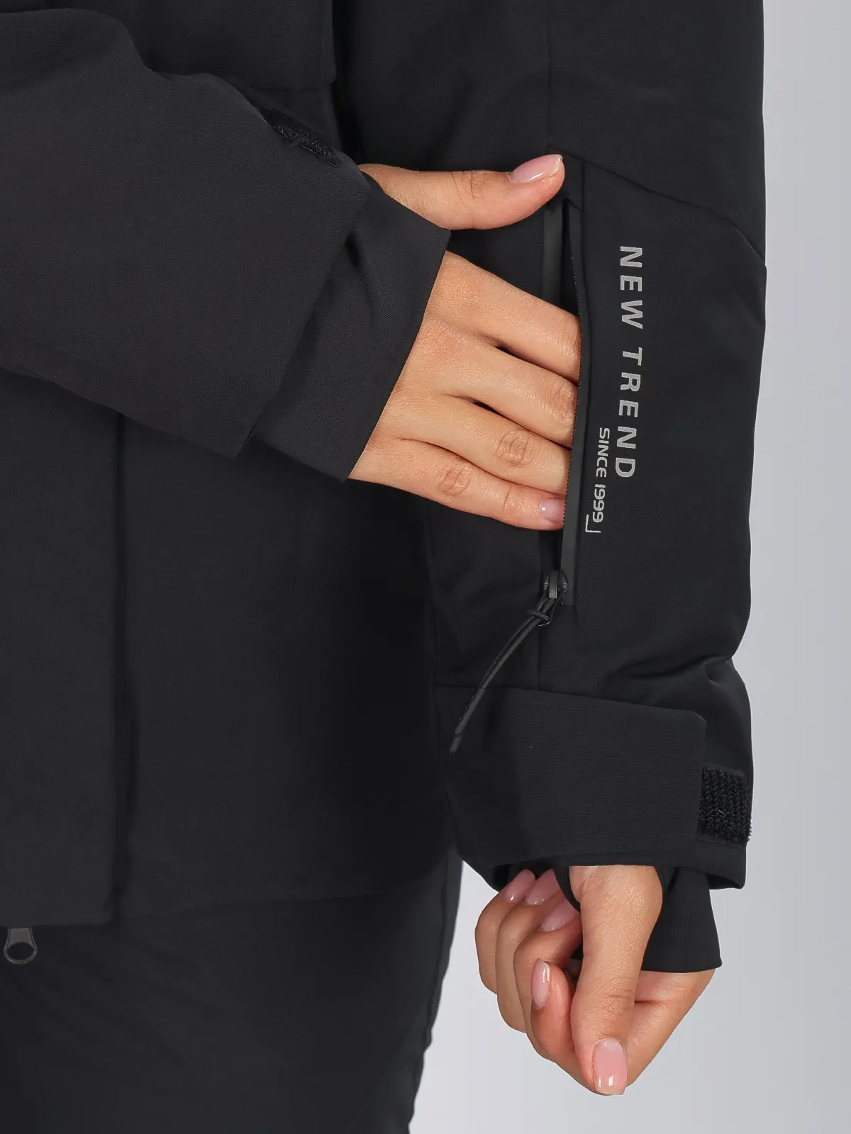 Несъемный регулируемый капюшон защитит от непогоды, а прорезные карманы на молнии и карман для ski pass обеспечат удобство хранения. Манжеты на липучках защищают от холода.