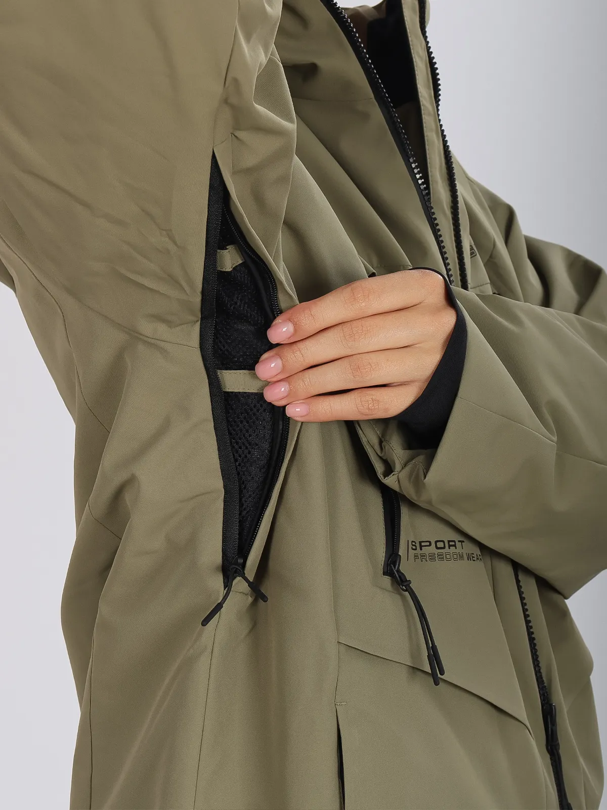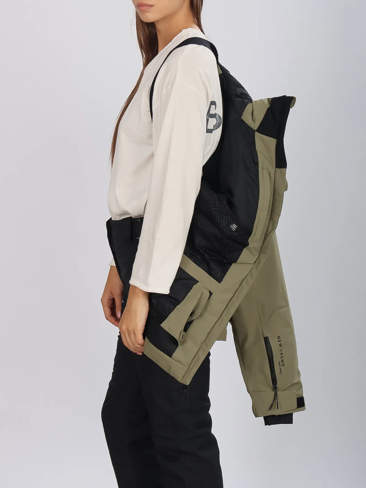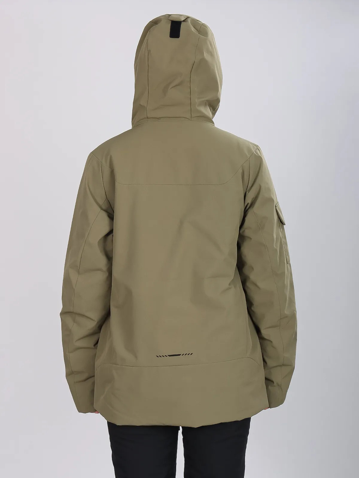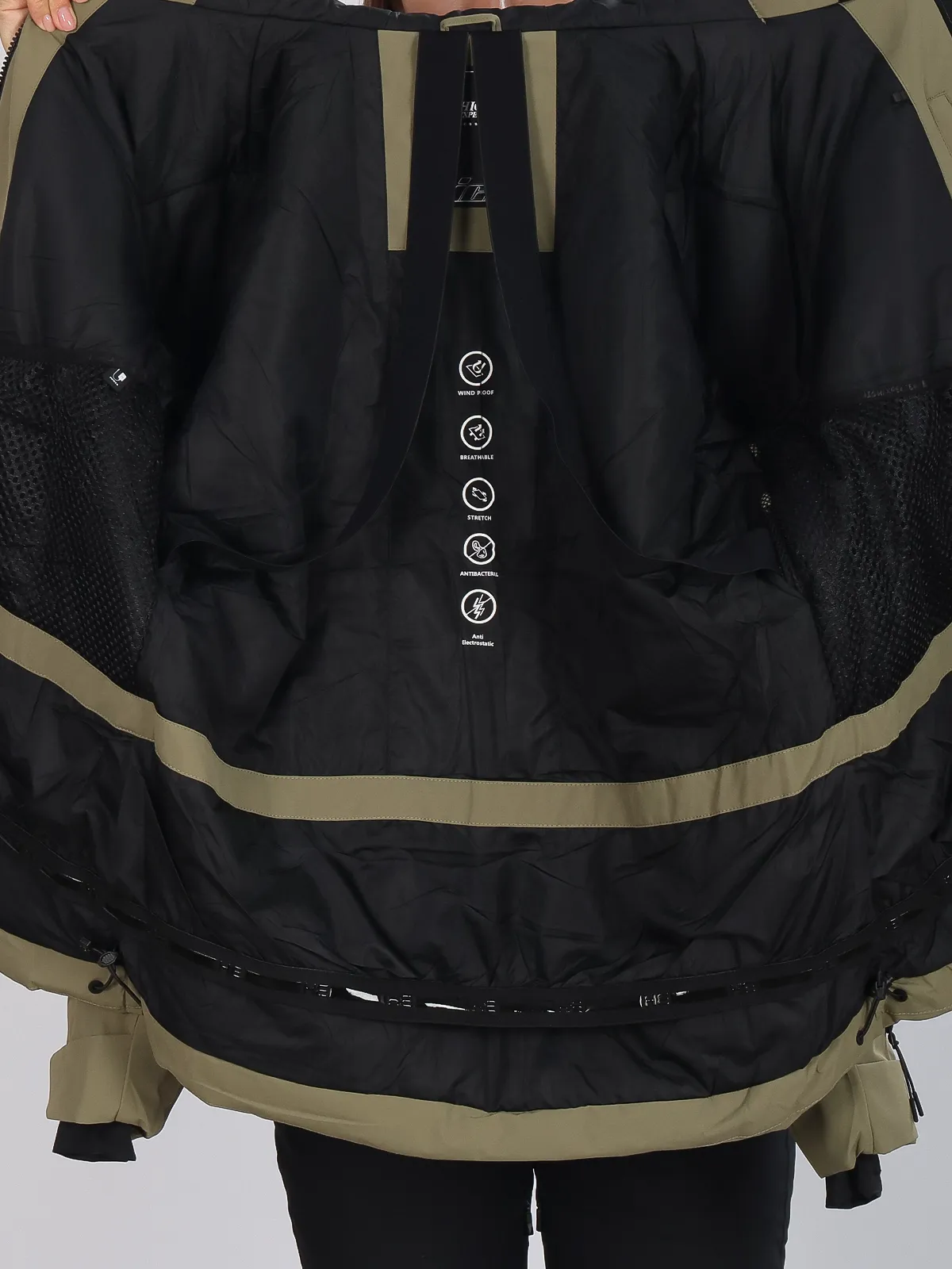 Снегозащитная юбка предотвращает попадание снега, а кулиса по нижнему краю помогает подогнать куртку по фигуре, защищая от холода. Лямки обеспечивают удобство при ношении.