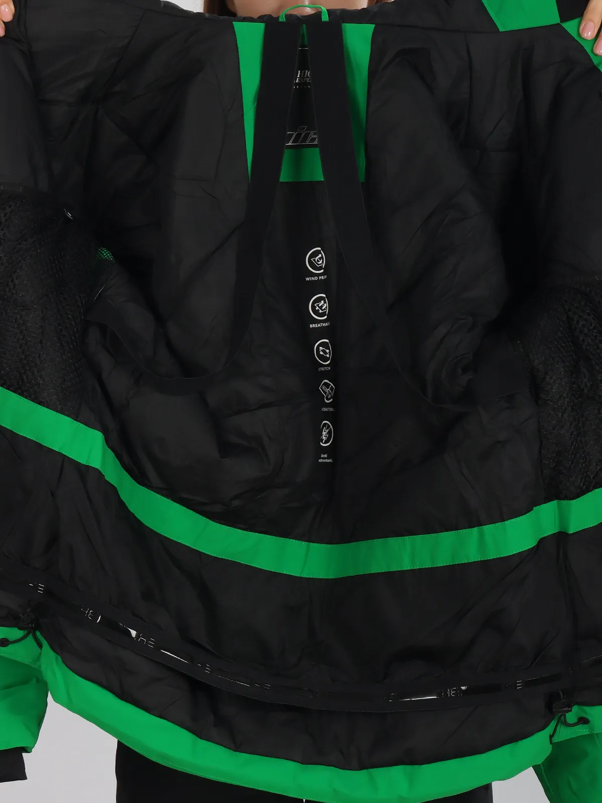 Снегозащитная юбка предотвращает попадание снега, а кулиса по нижнему краю помогает подогнать куртку по фигуре, защищая от холода. Лямки обеспечивают удобство при ношении.
