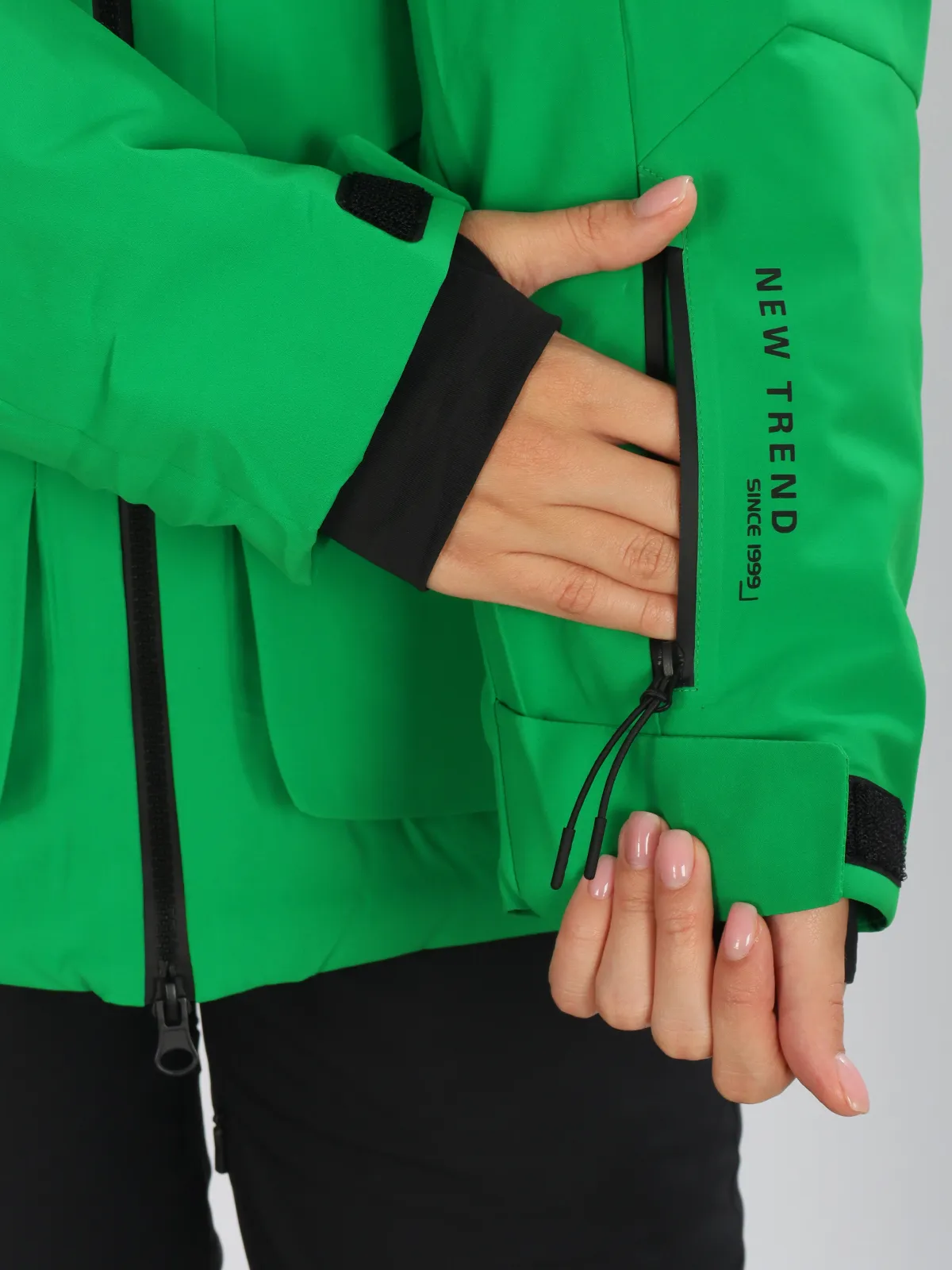 Куртка оснащена несъемным регулируемым капюшоном, который защищает от непогоды. Накладные карманы на молнии и карман для ski pass обеспечивают удобный доступ.